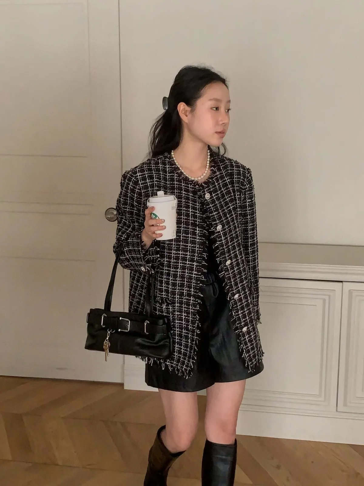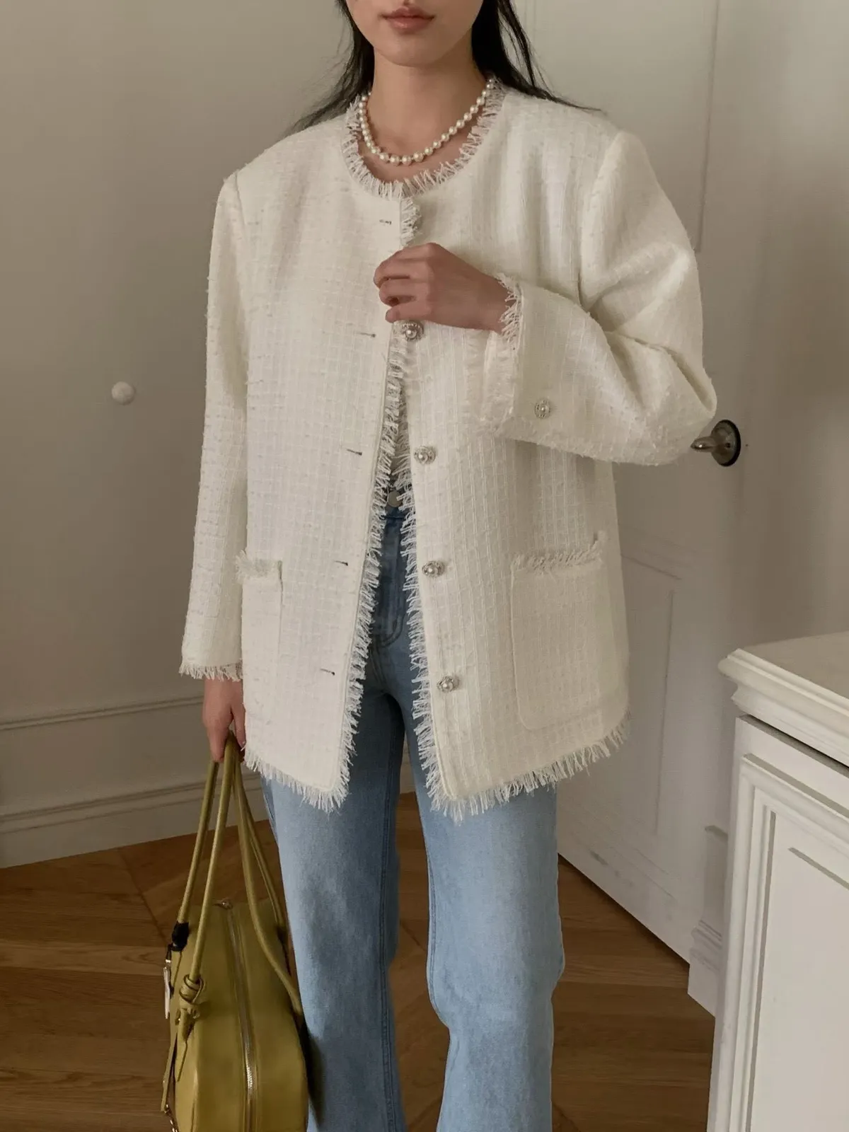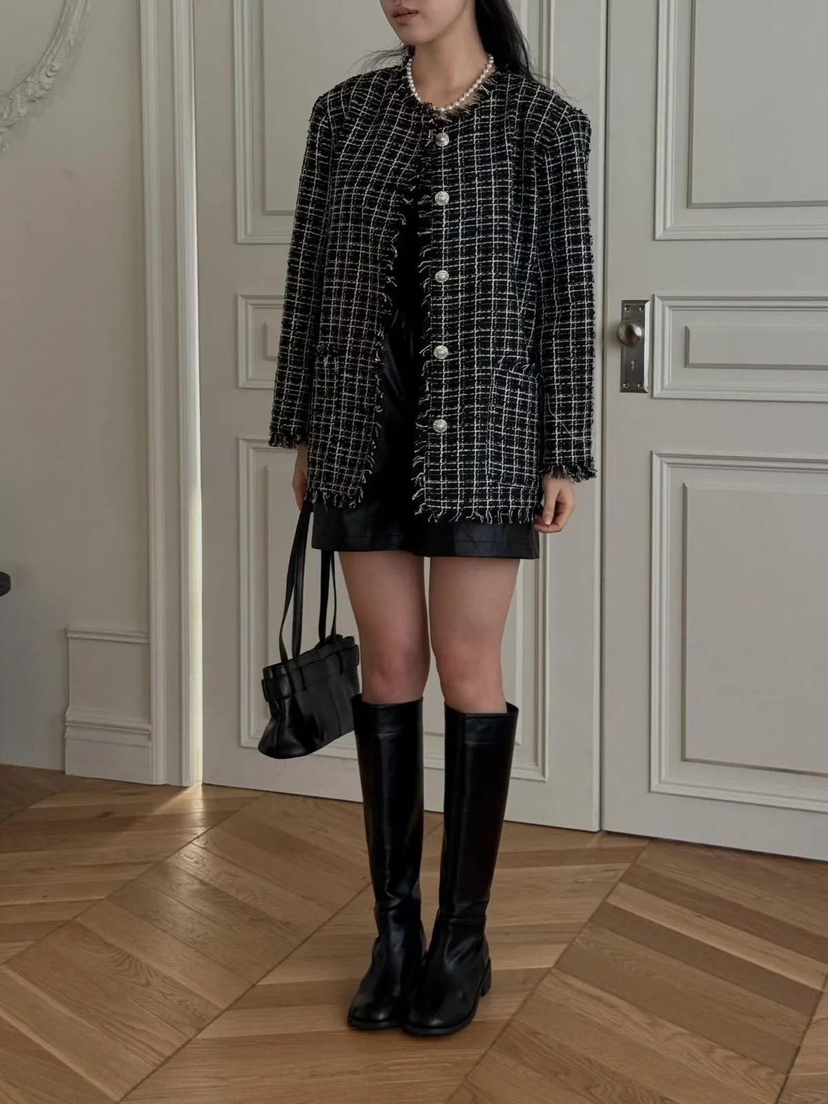 C22字母家細緻格紋珍珠扣小香外套
