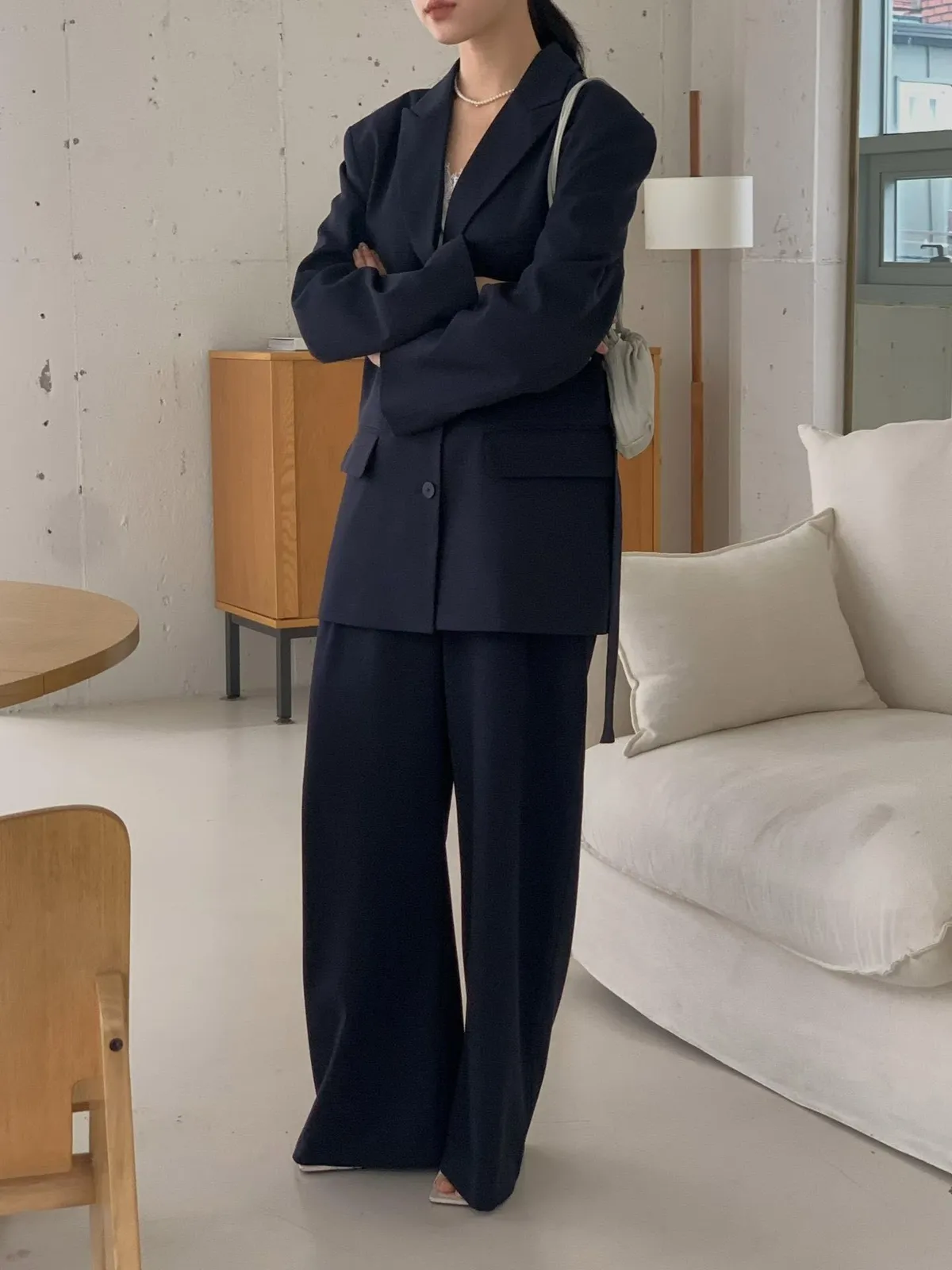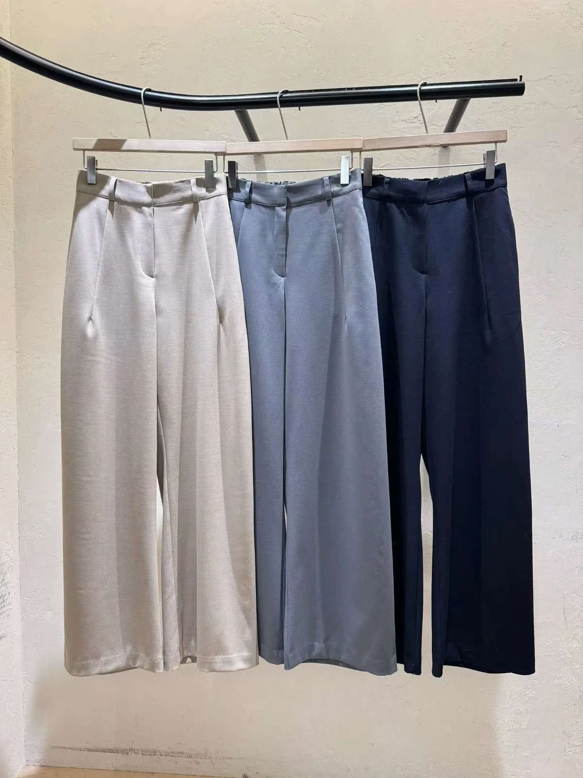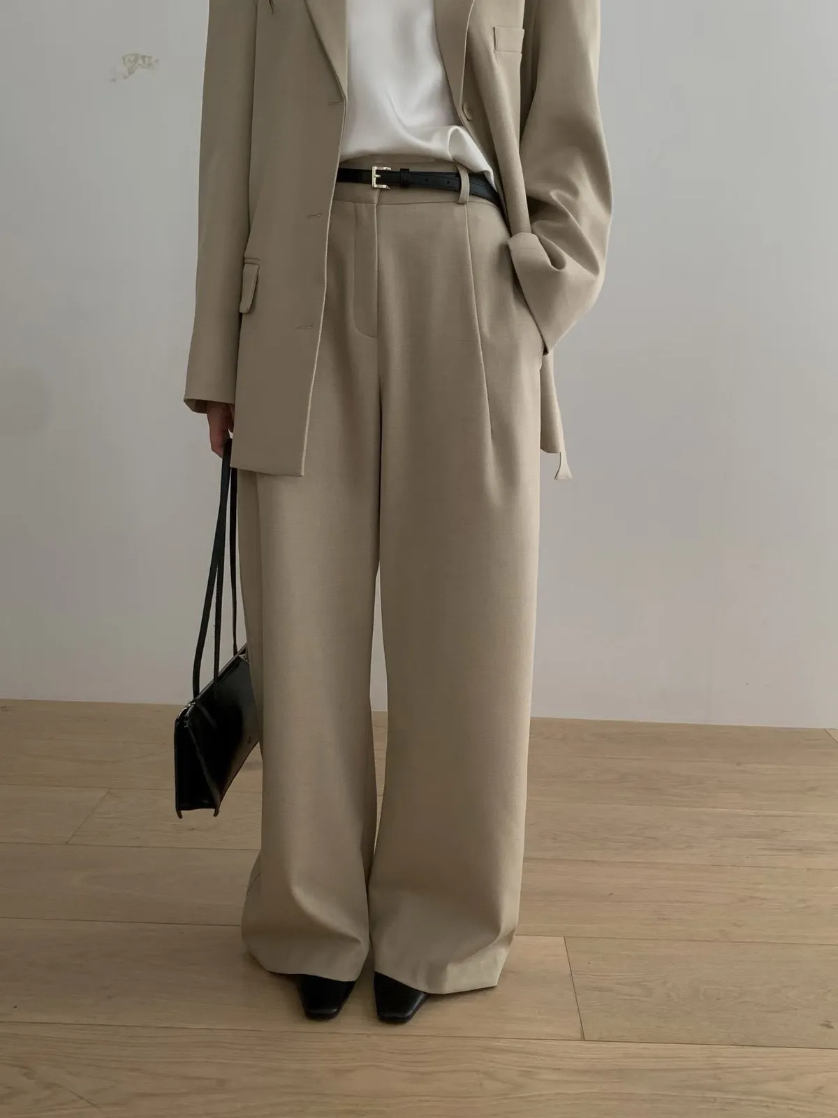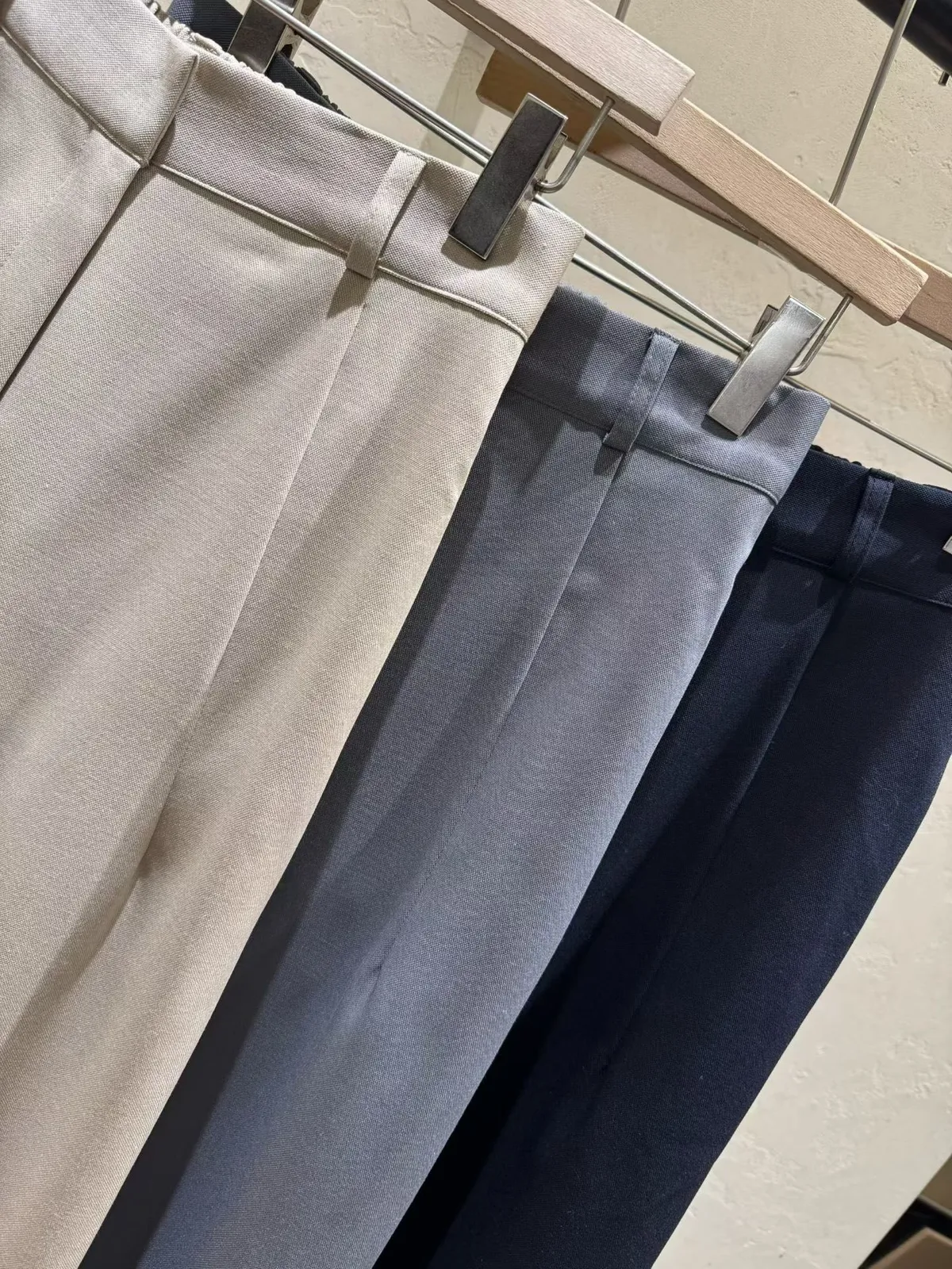 C12字母家後鬆緊壓褶直筒西裝長褲