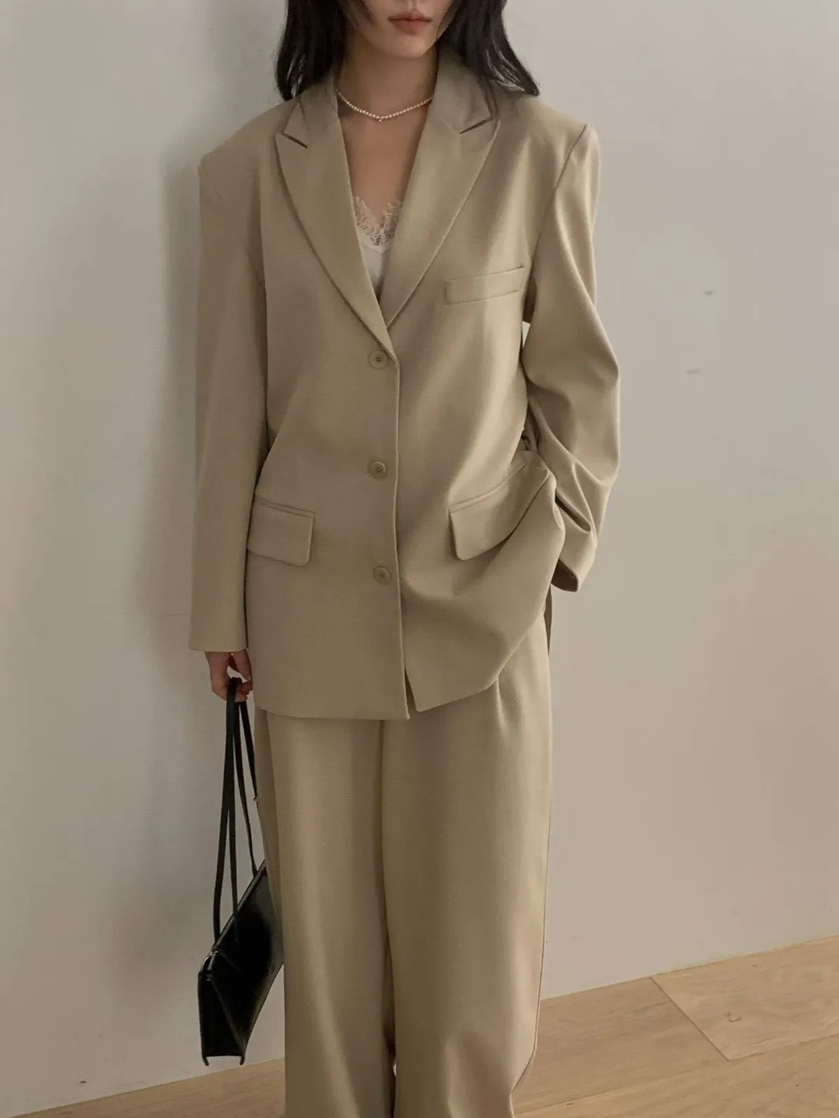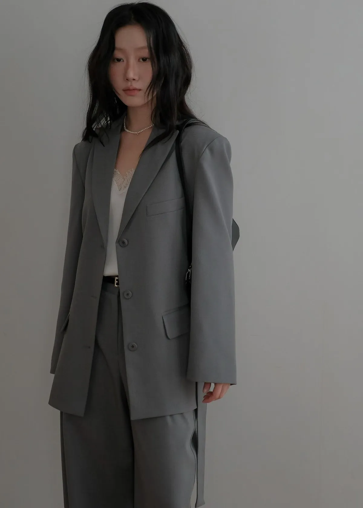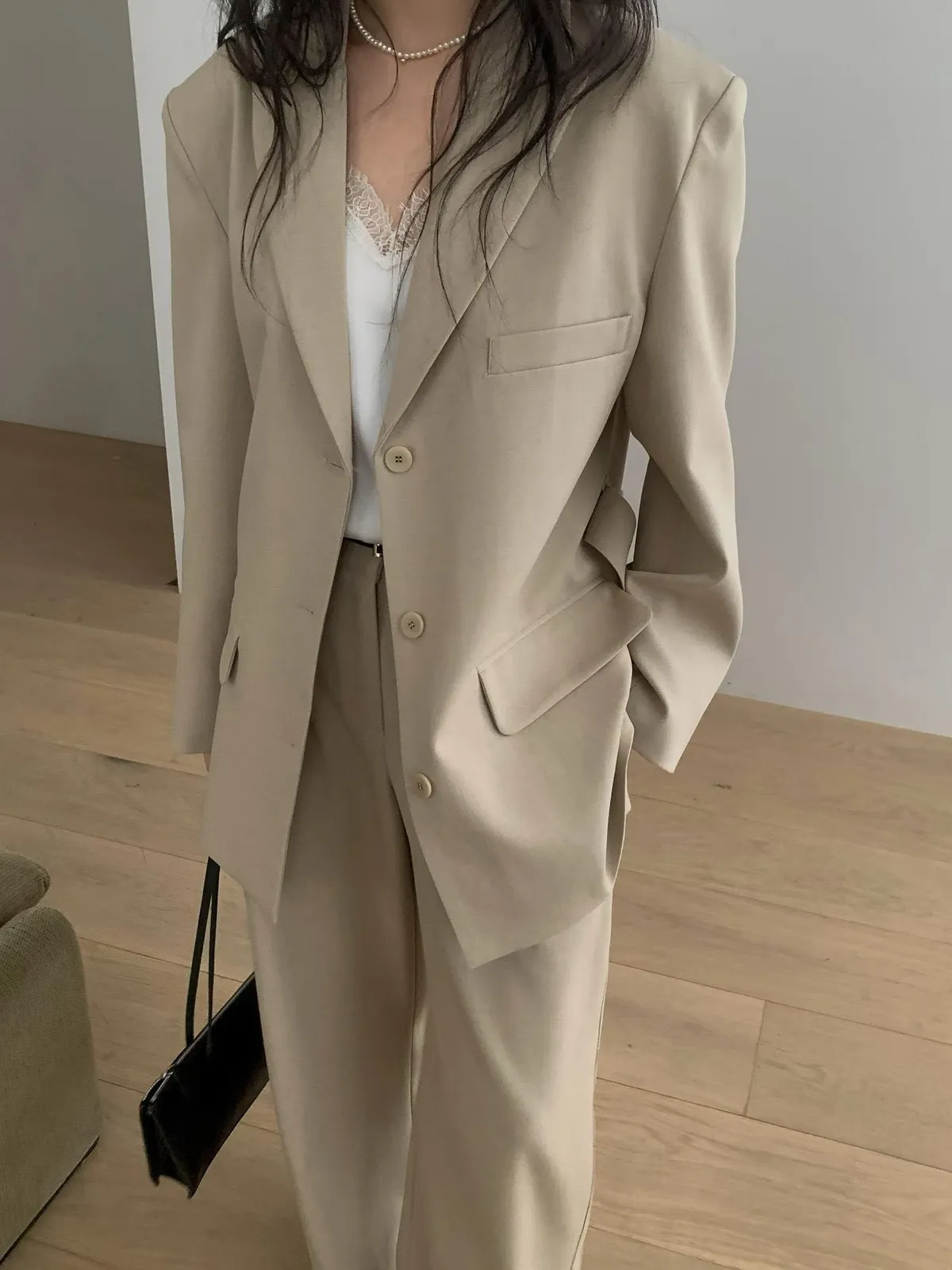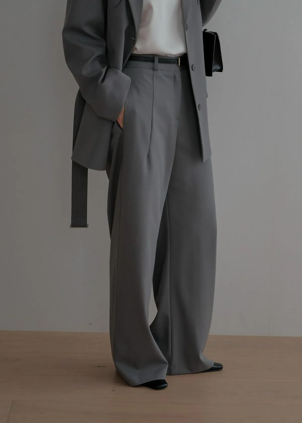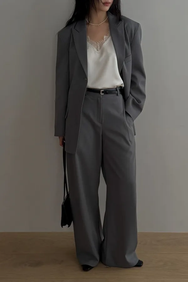 C12字母家後鬆緊壓褶直筒西裝長褲