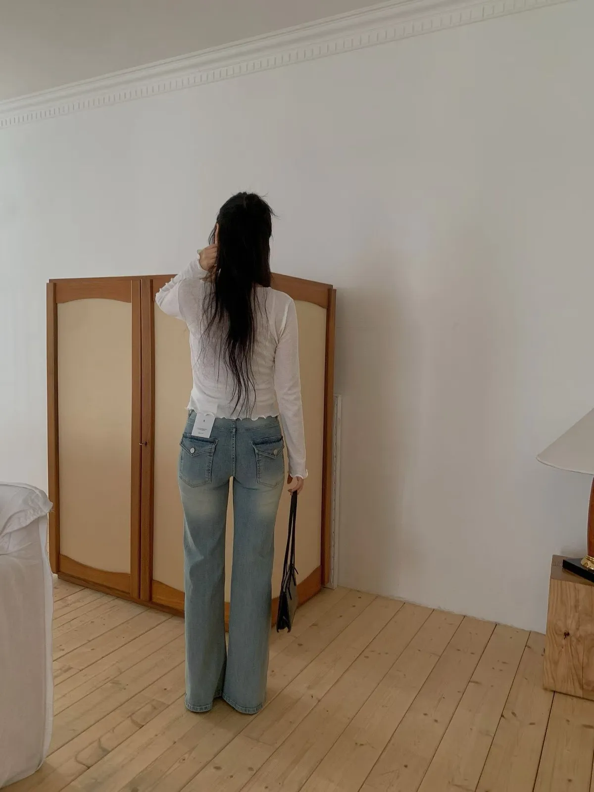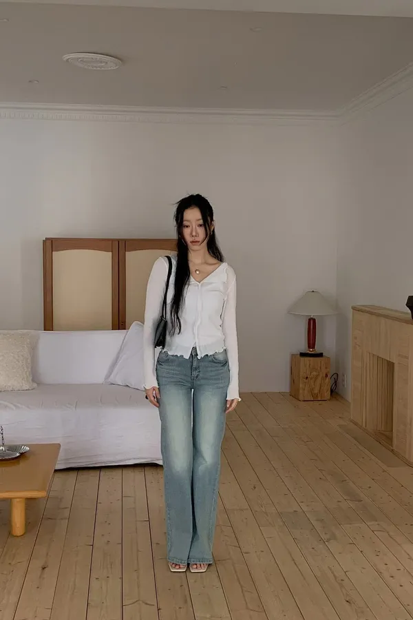 C5字母家長腿刷色微喇叭牛仔褲