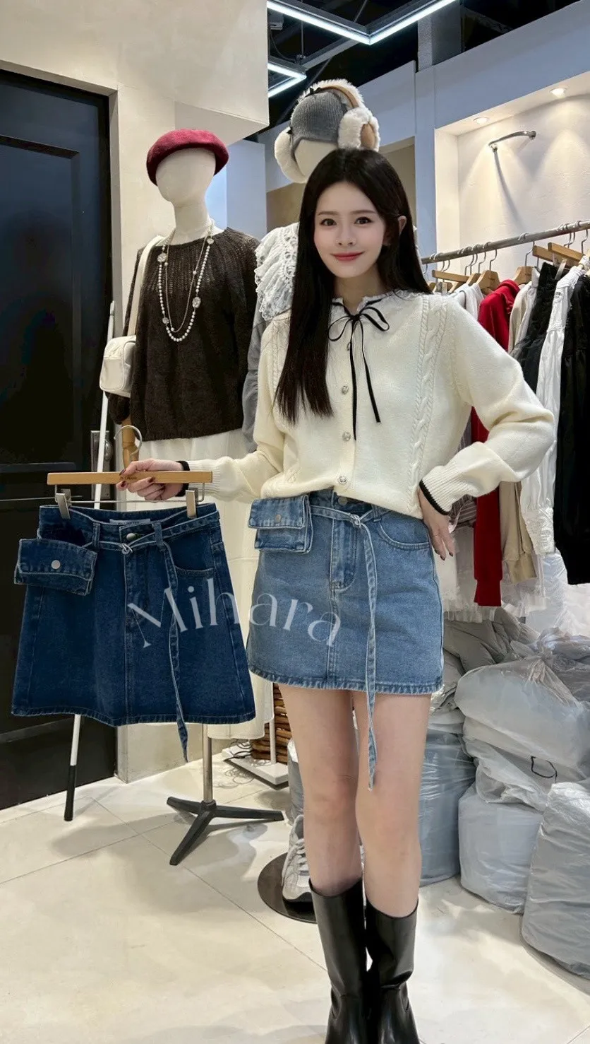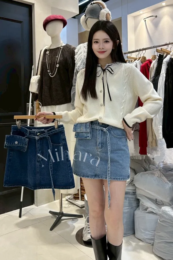 A31 0201(限量特)設計家A字牛仔短褲裙附腰帶小包2色(S/M/L)