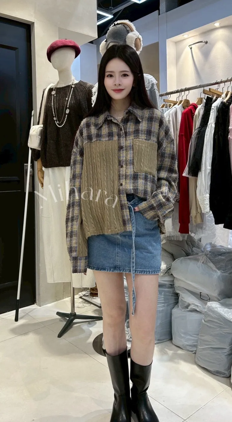 A32 0201(限量特)設計家拼接針織格紋襯衫
