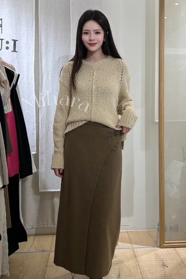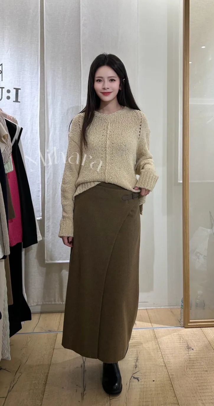A23 0202(限量特)氣質歐膩家混羊毛後開衩針織半裙(S)