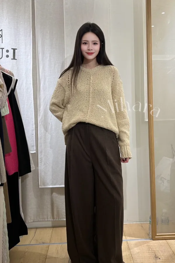 A24 0202(限量特)氣質歐膩家混羊毛中線西裝寬褲(M)