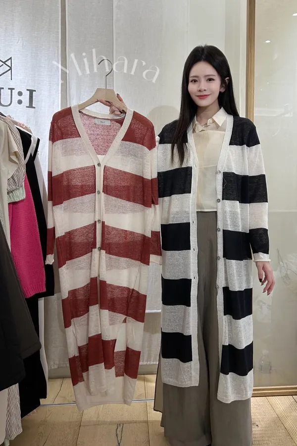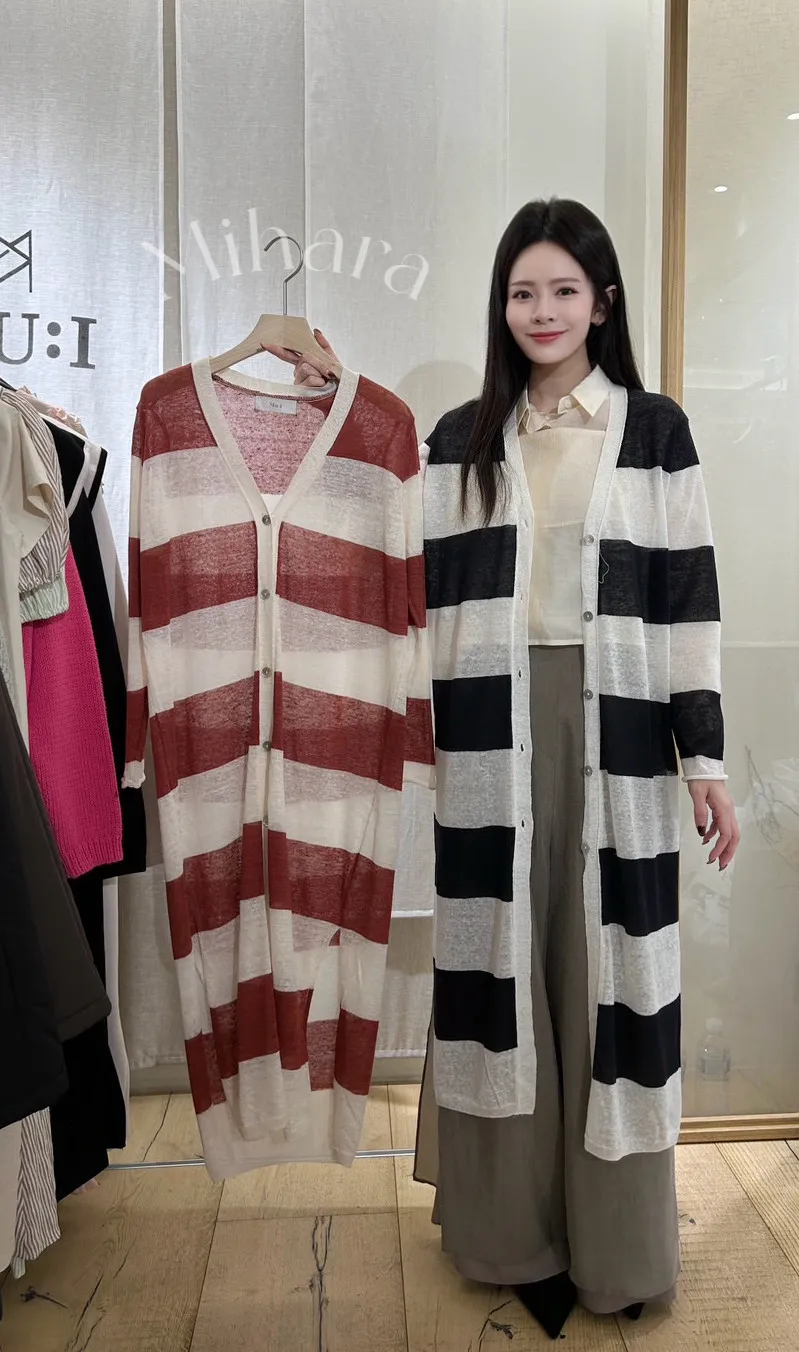 A45 0202(限量特)氣質歐膩家側開衩寬橫條V領針織罩衫2色