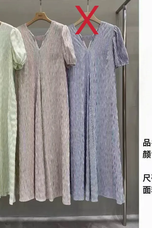 C127(限量特)氣質歐膩V領直紋度假洋裝2色