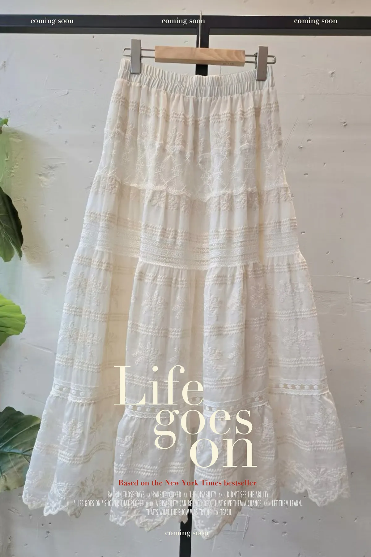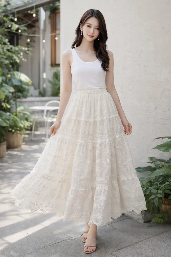 C219CP外套米杏色蕾絲拼接鬆緊腰紗裙