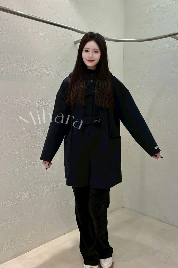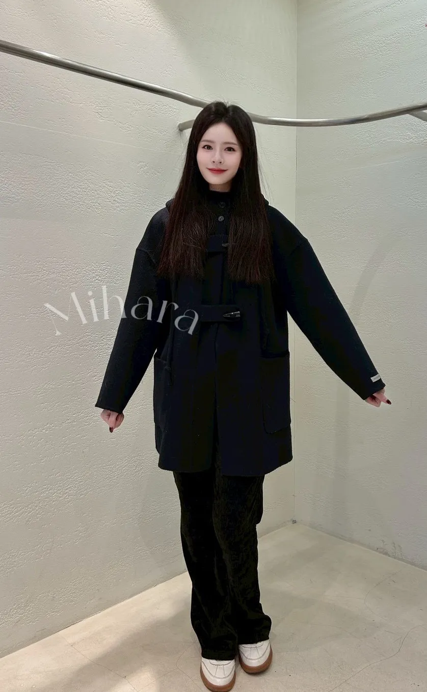 A4 0204(限量特)高檔W外套家羊毛混羊絨牛角釦連帽手工大衣外套