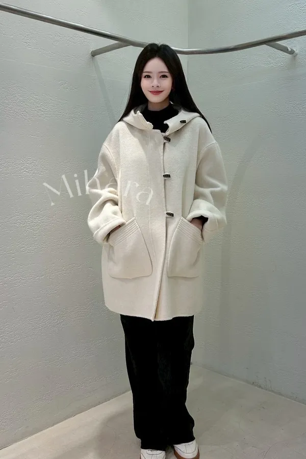 A5 0204(限量特)高檔W外套家羊毛混羊絨牛角釦連帽手工大衣外套