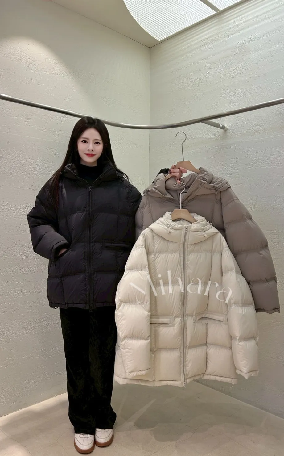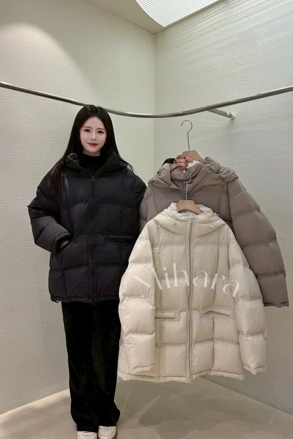 A16 0204高檔W外套家中長版連帽鵝絨外套3色