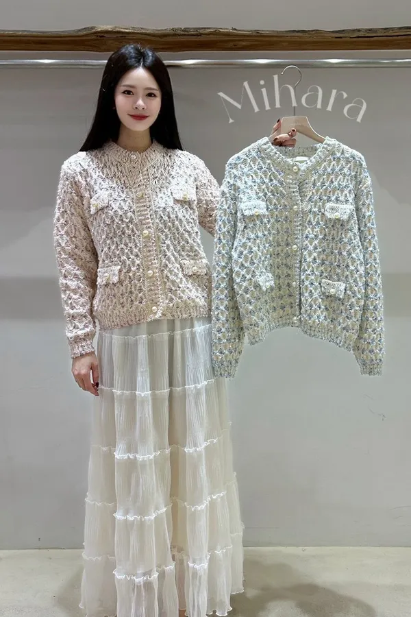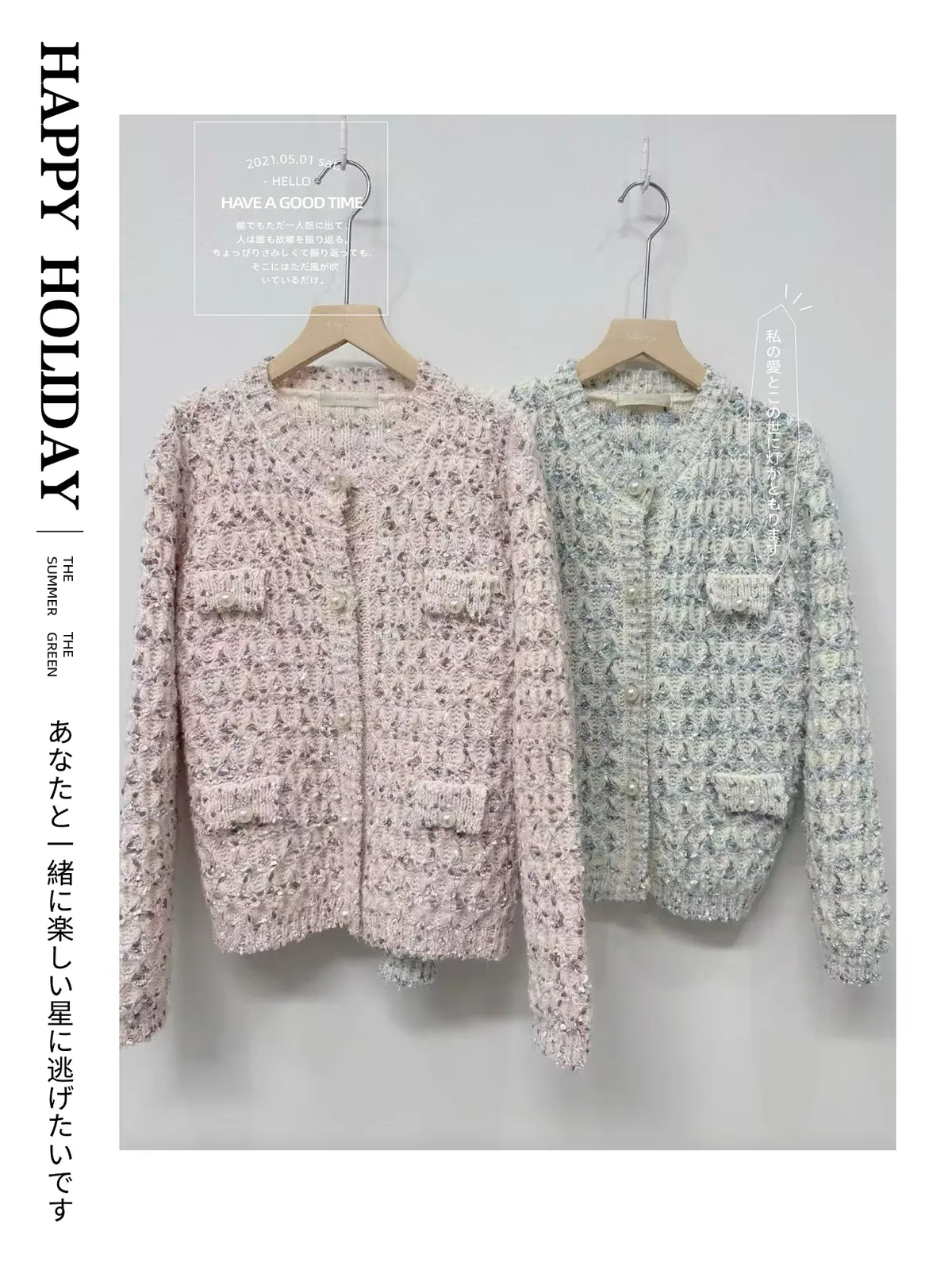 A22 0204甜甜CP家珍珠釦圓領小香針織外套2色