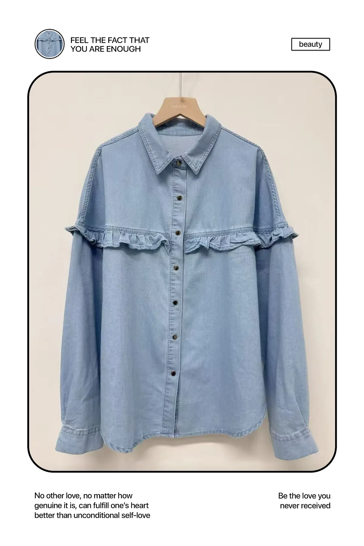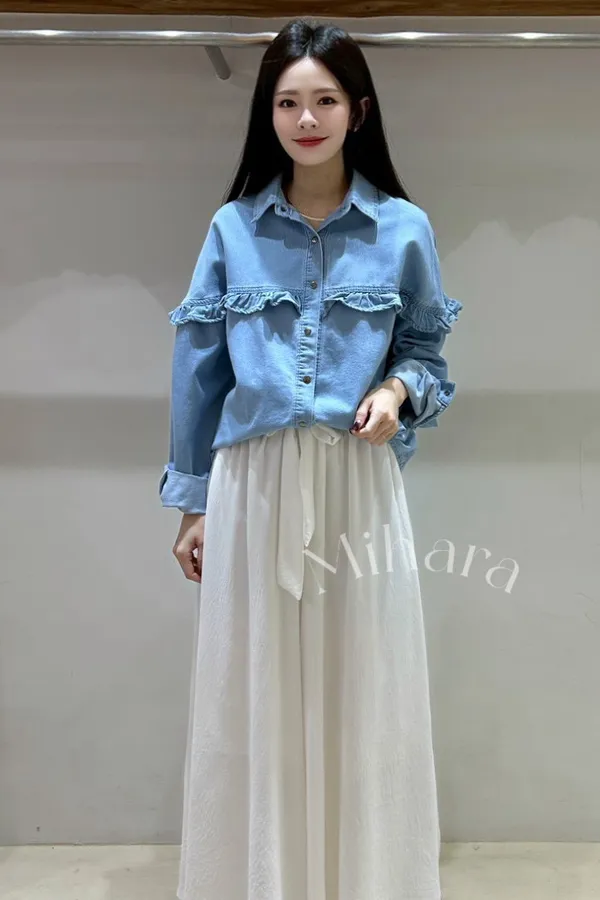 A23 0204甜甜CP家荷葉邊牛仔襯衫