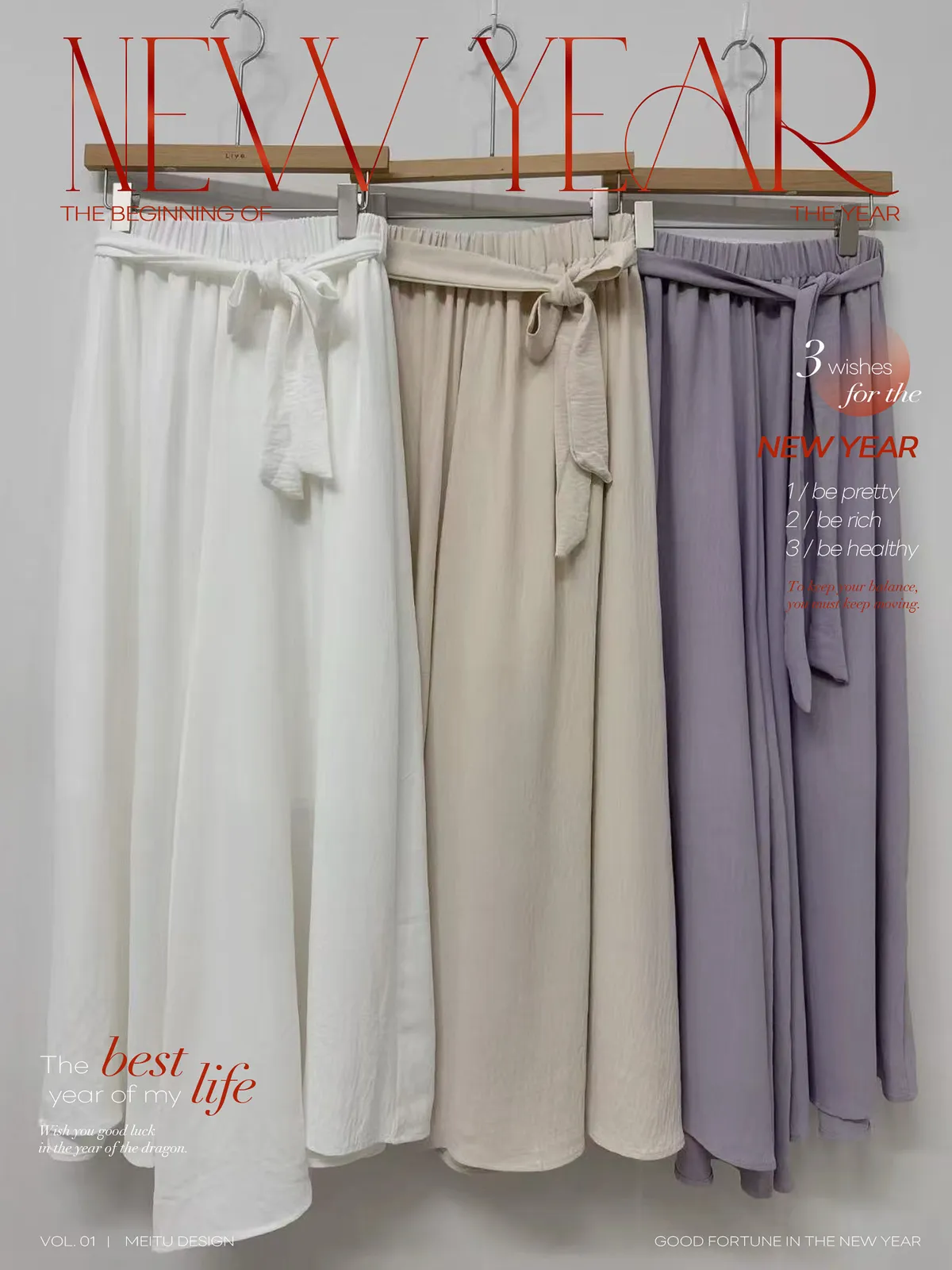 A26 0204甜甜CP家傘狀大寬褲附腰帶3色