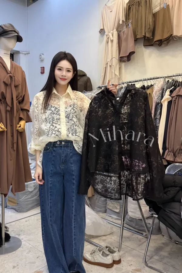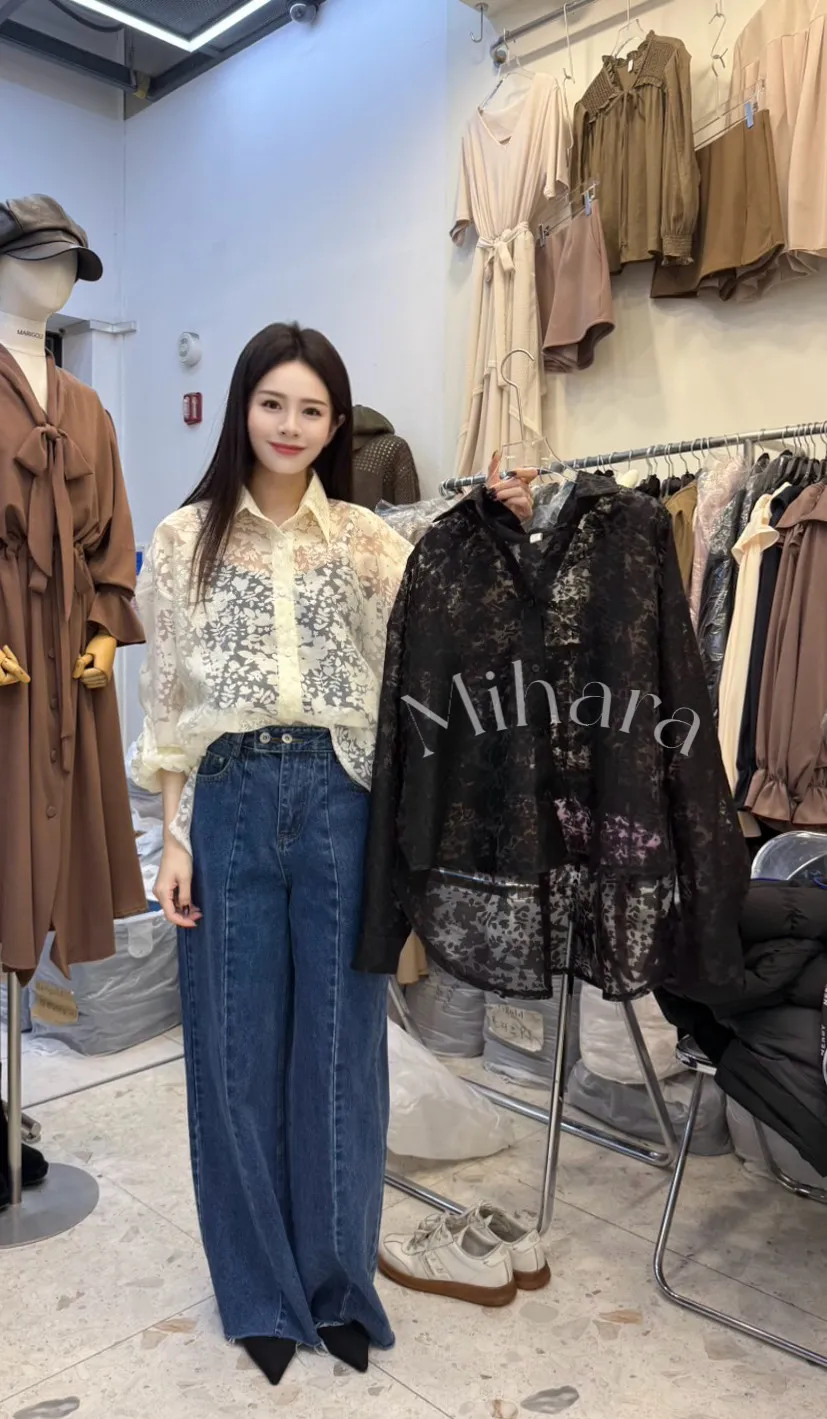 A42 0205設計家雕花透膚襯衫2色