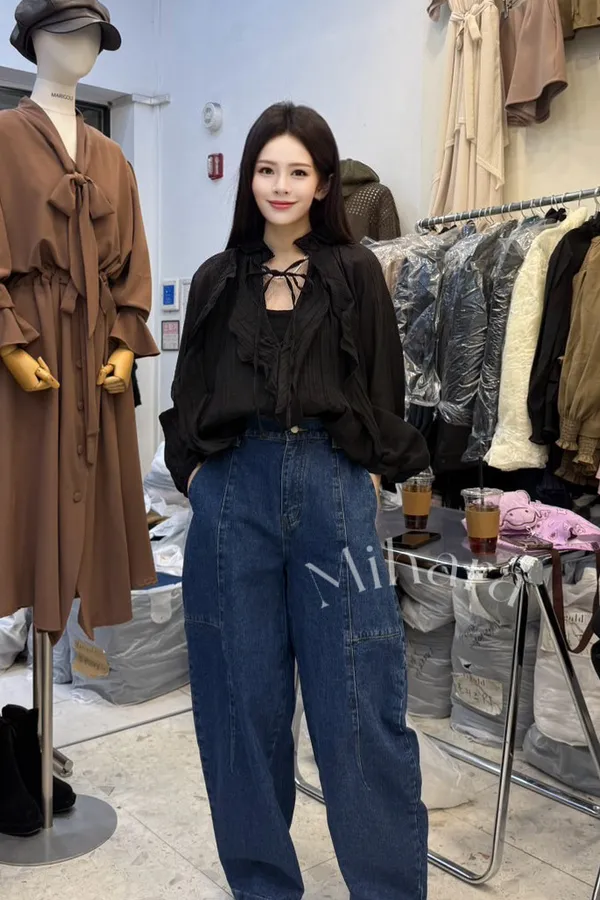 A50 0205(限量特)設計家荷葉邊綁帶襯衫