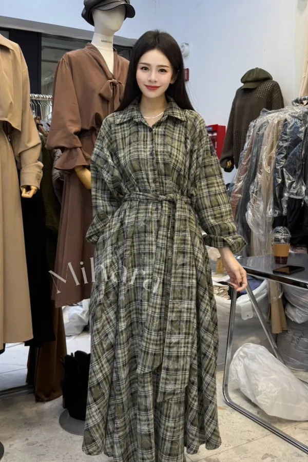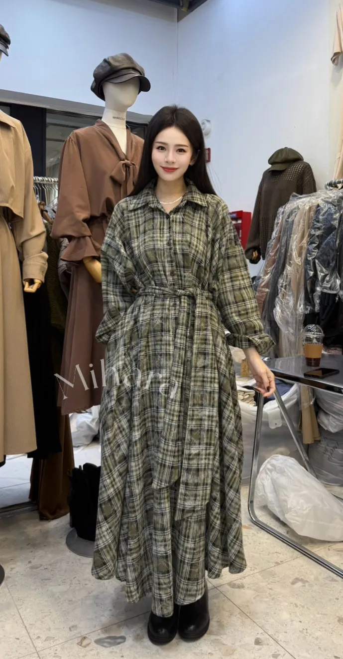 A58 0205(限量特)設計家格紋襯衫洋裝附腰帶