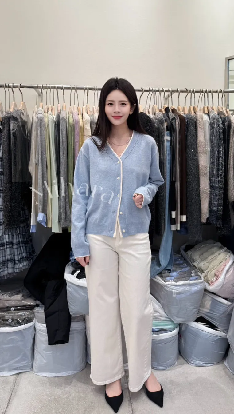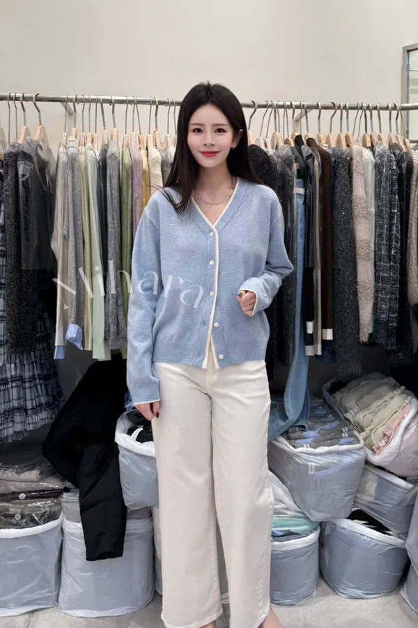 A71 0205Love針織家撞色滾邊V領針織外套3色