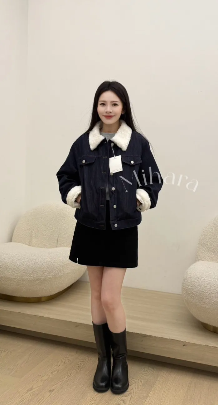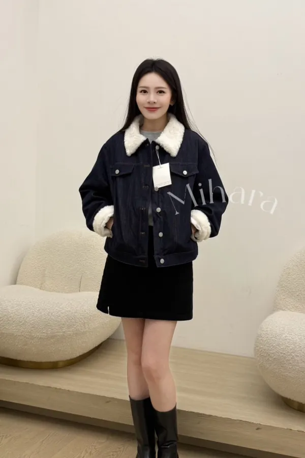A3 0209(限量特)高檔設計家拼接毛毛牛仔鋪棉外套