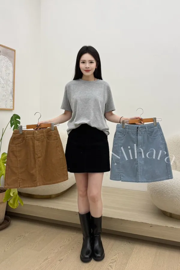 A7 0209(限量特)高檔設計家側開衩A字燈芯絨短裙3色(S/M/L)