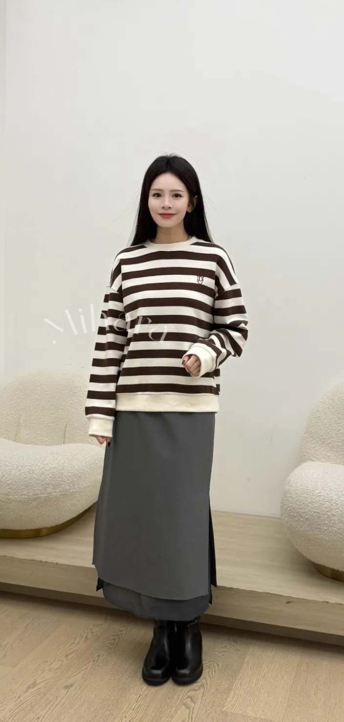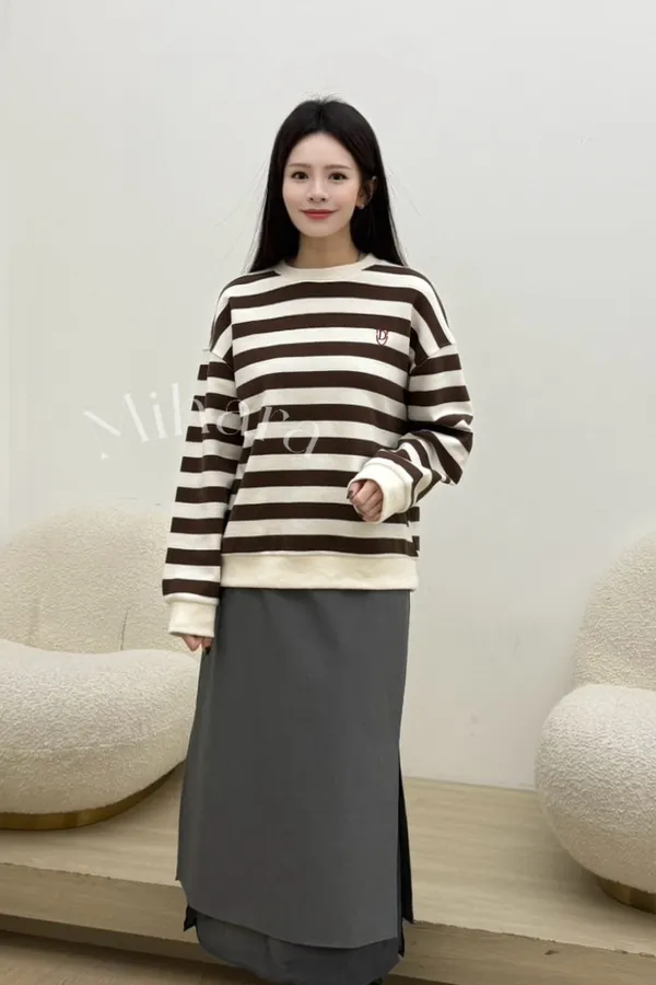 A14 0209(限量特)高檔設計家寬橫條刺繡大學T恤