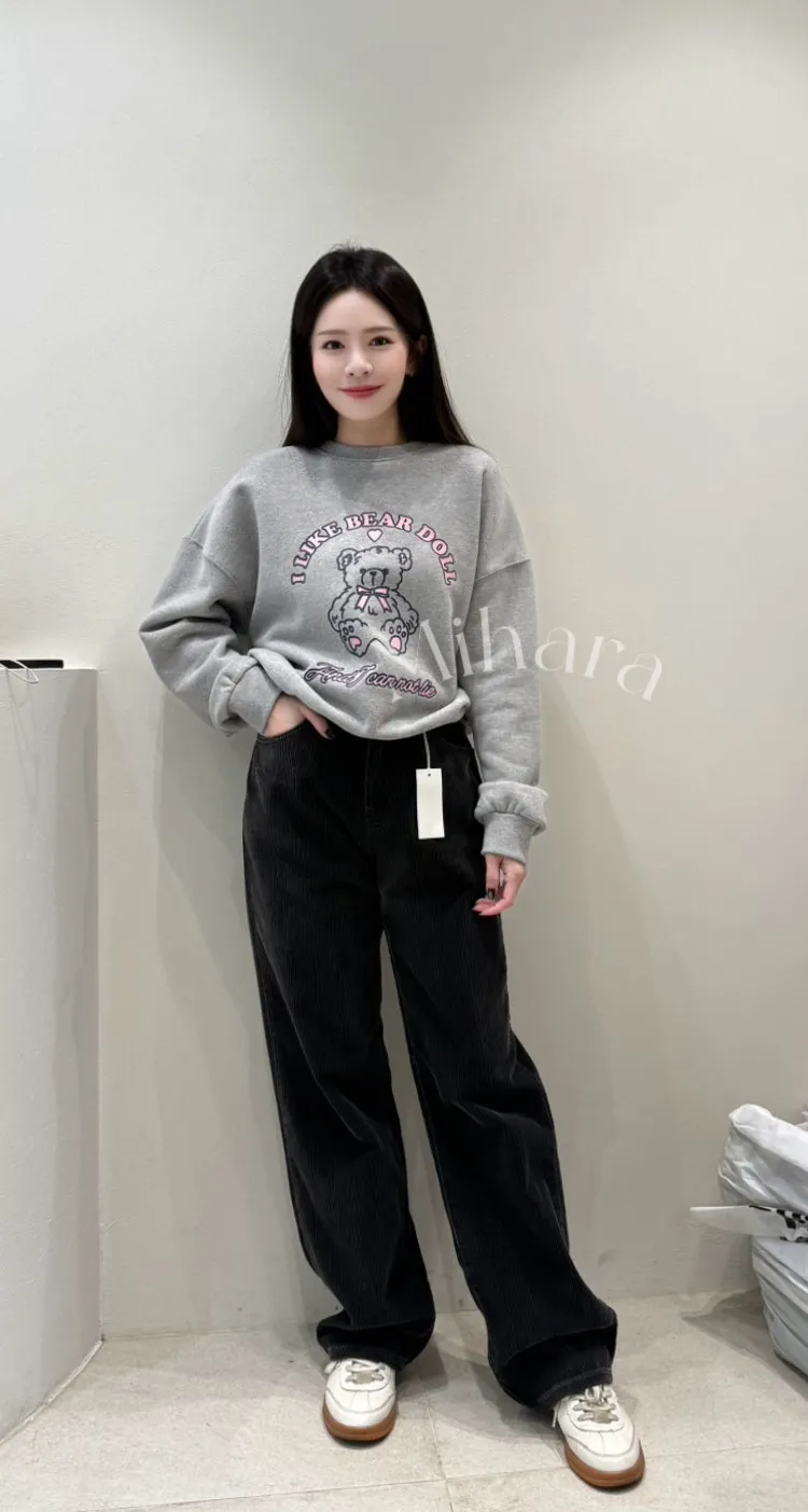 A33 0209(限量特)高檔質感家蝴蝶結小熊圖案內刷毛大學T恤