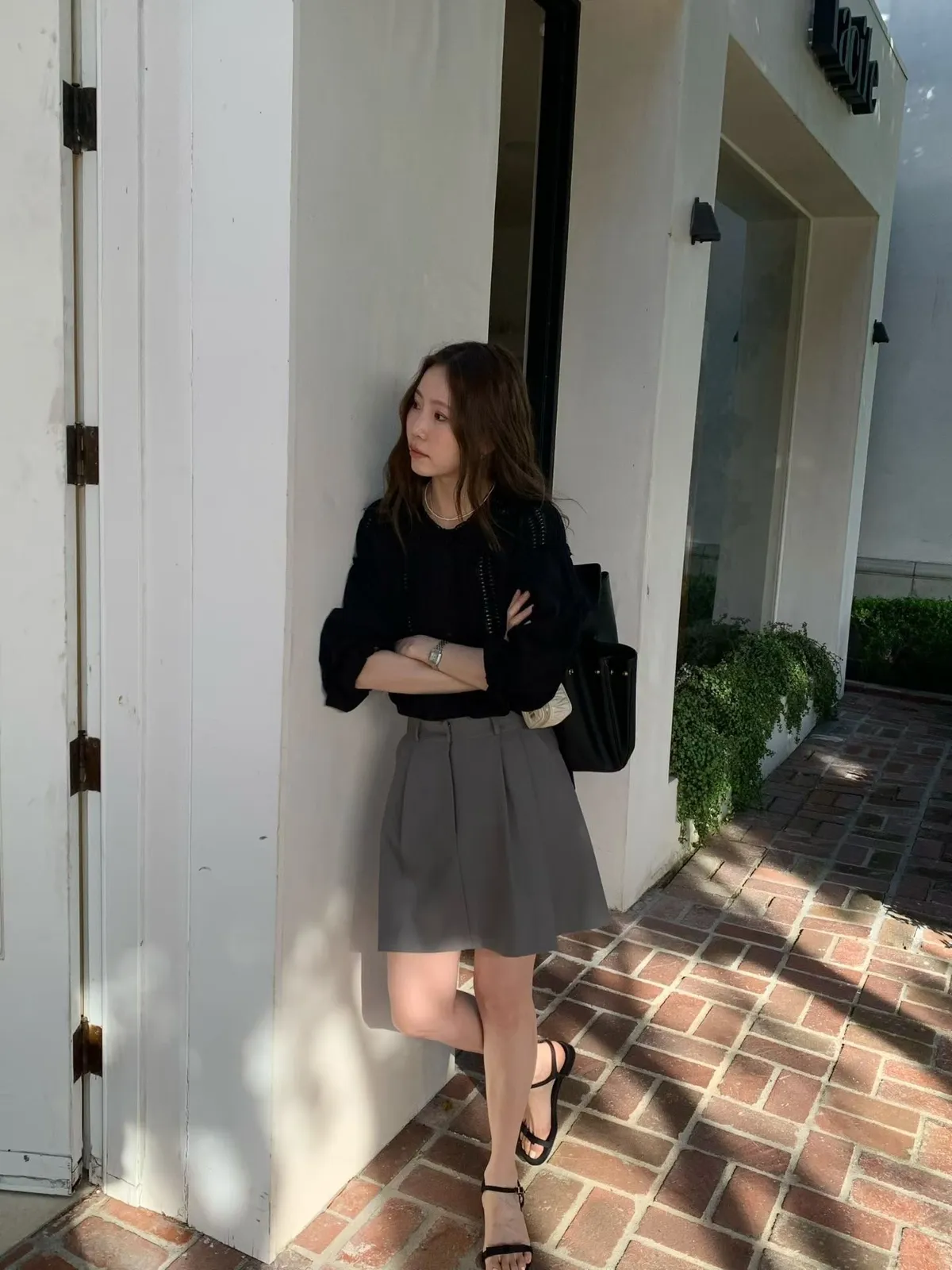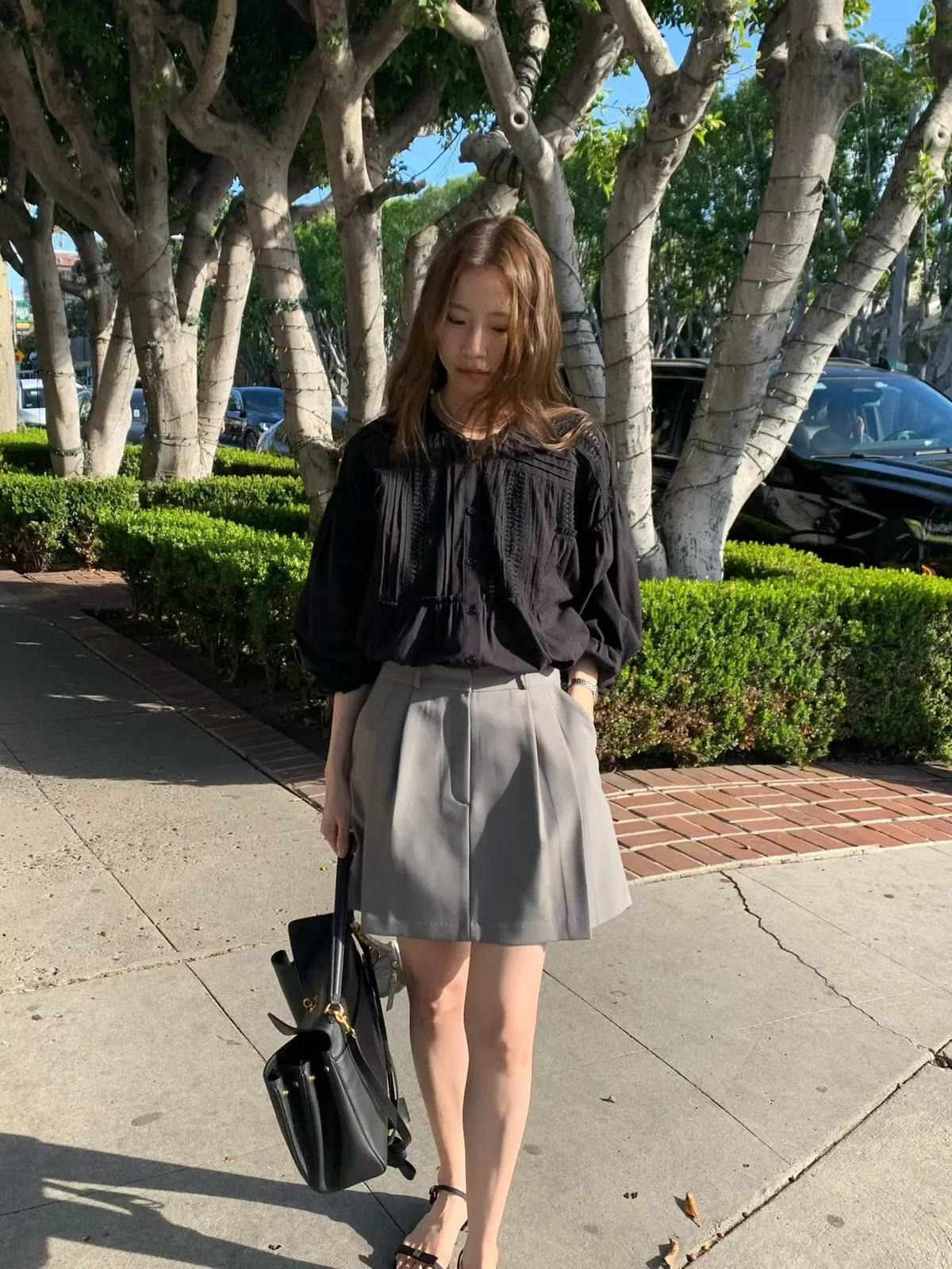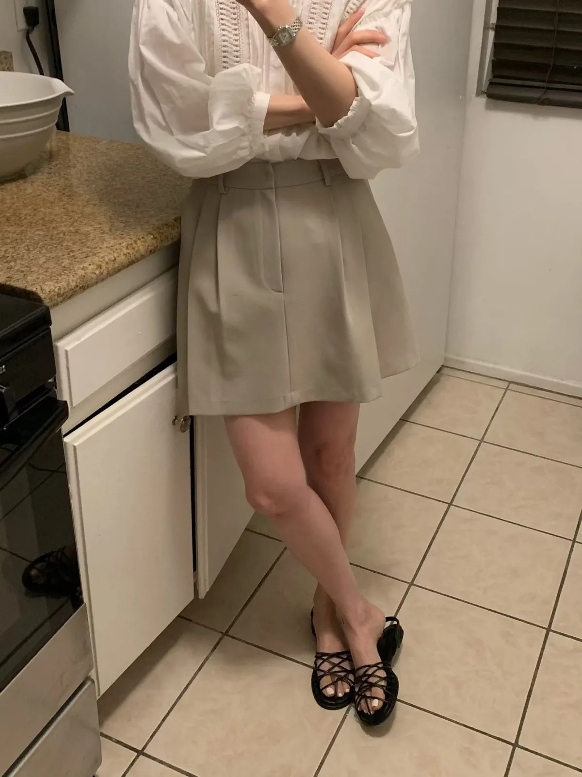 C703捲髮歐膩百搭壓褶褲裙(S/M)