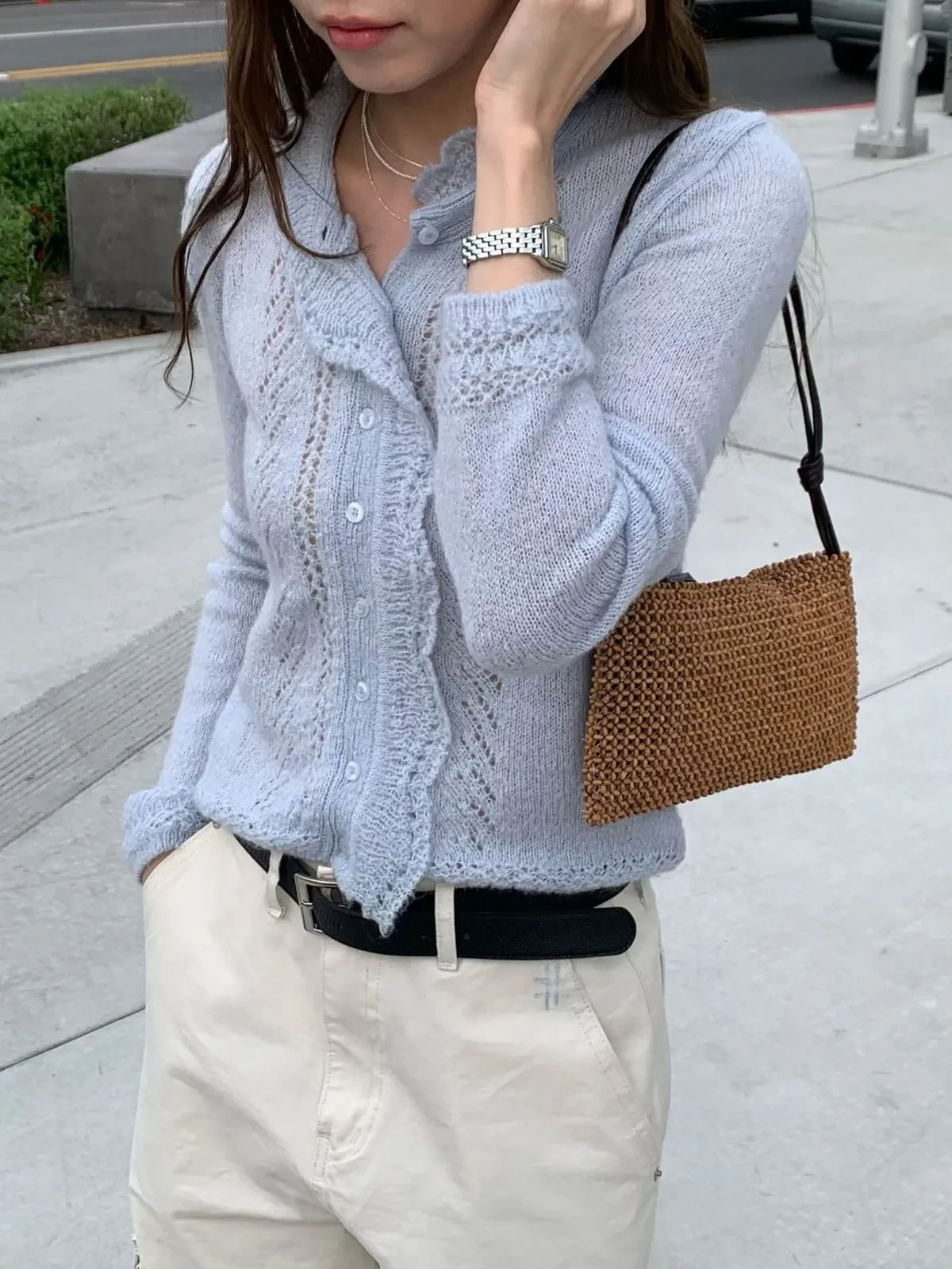 C704捲髮歐膩羊毛馬海毛紗線罩衫