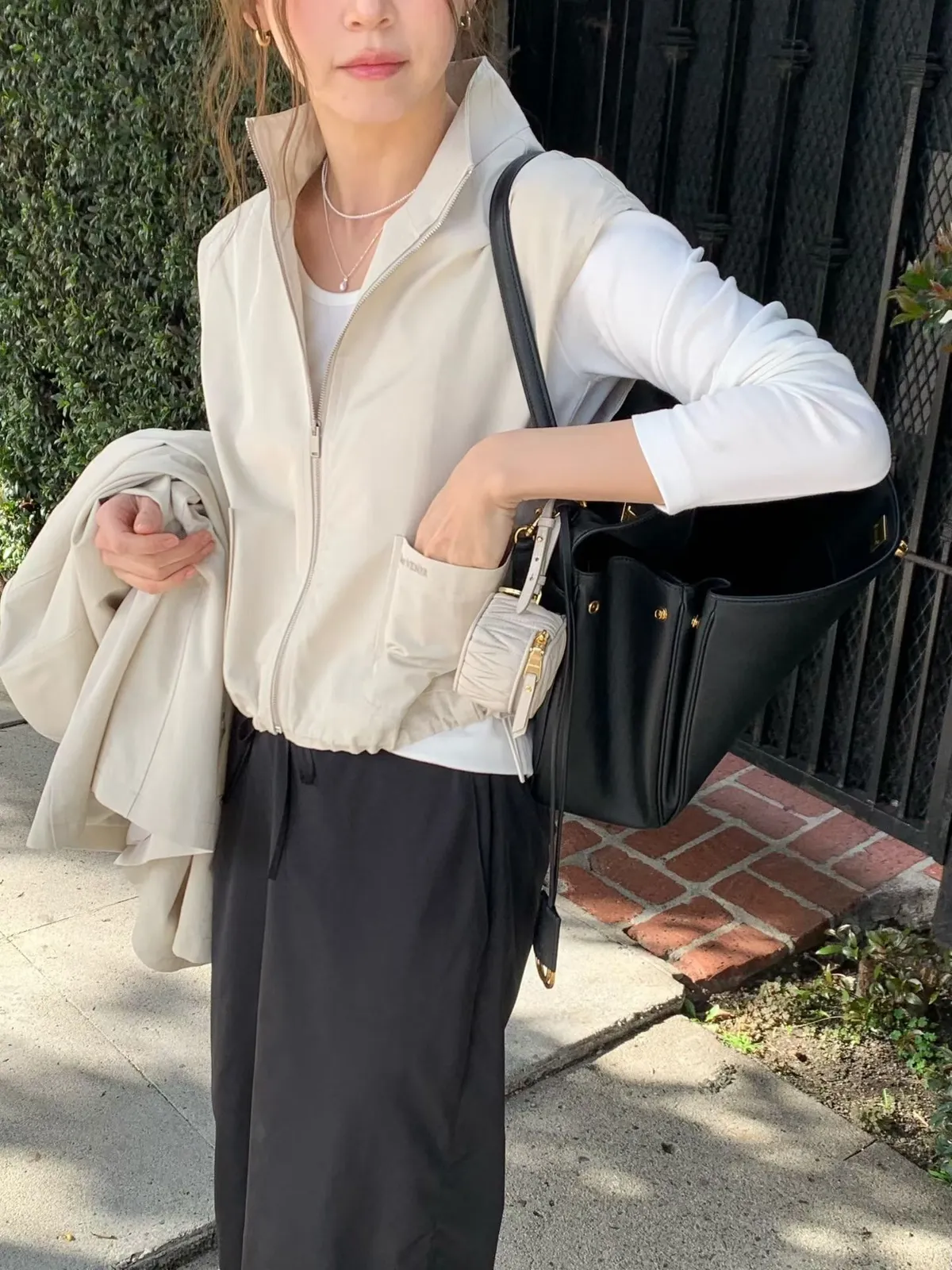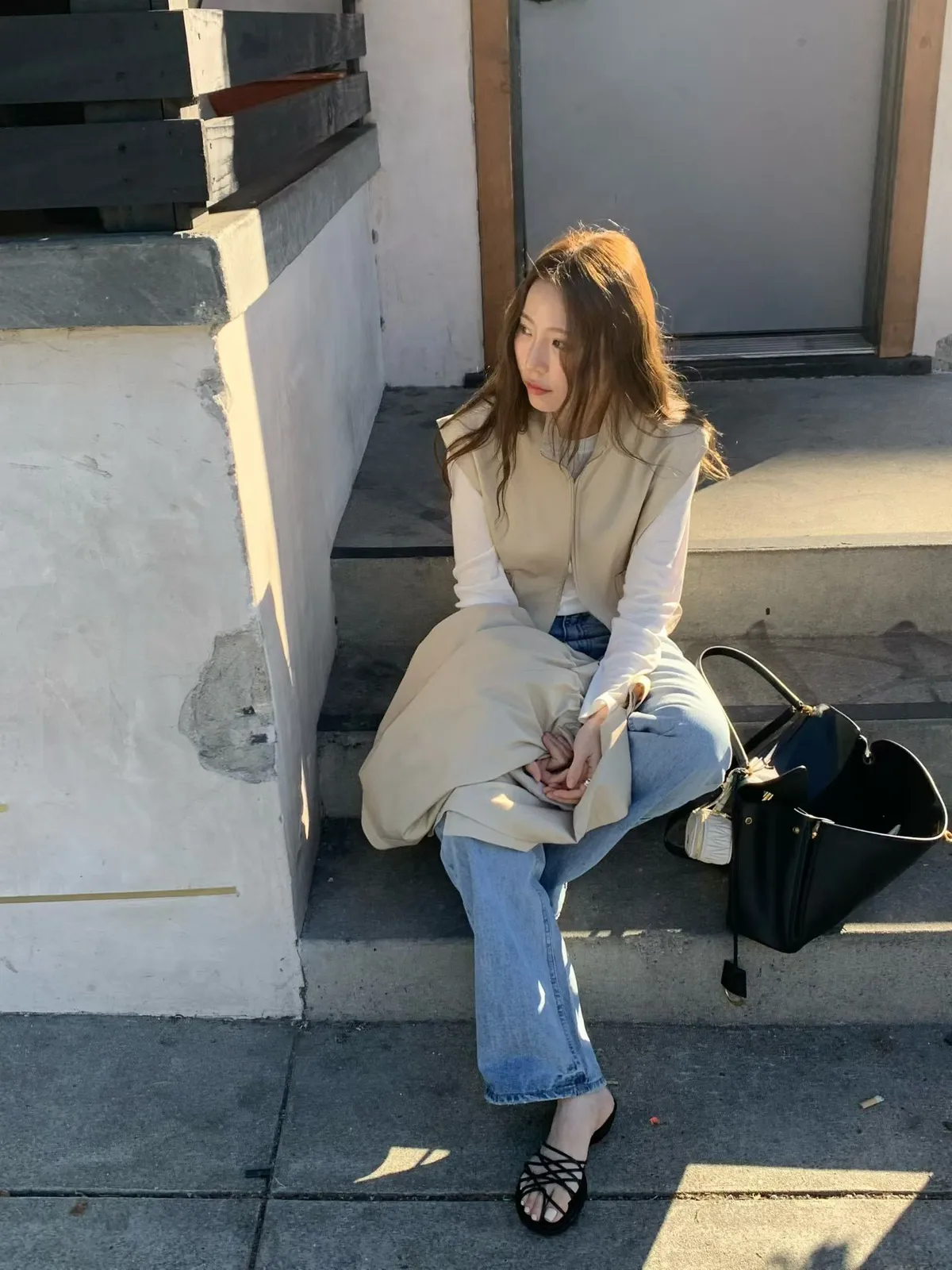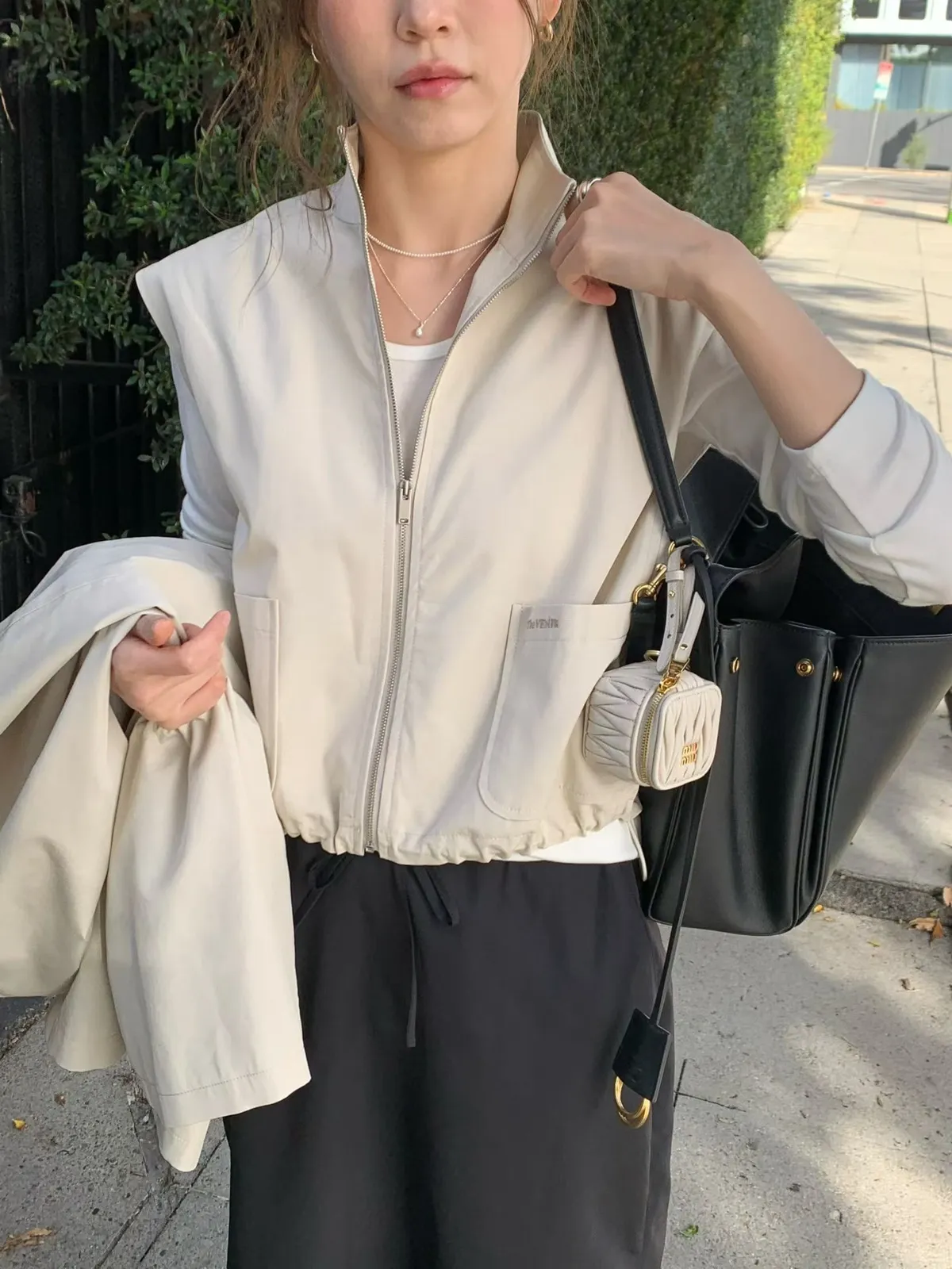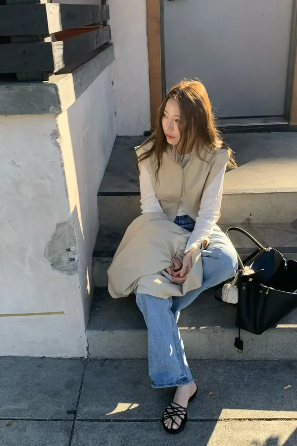 C722捲髮歐膩大口袋拉鏈背心