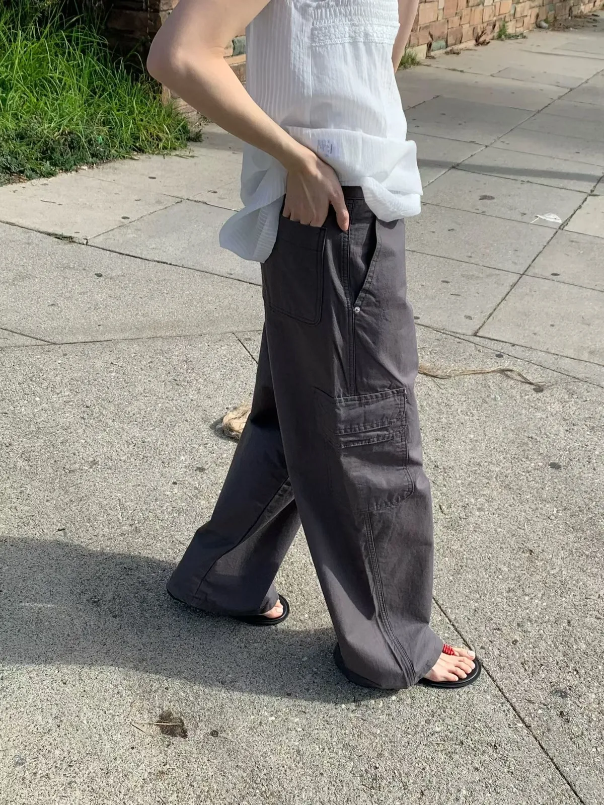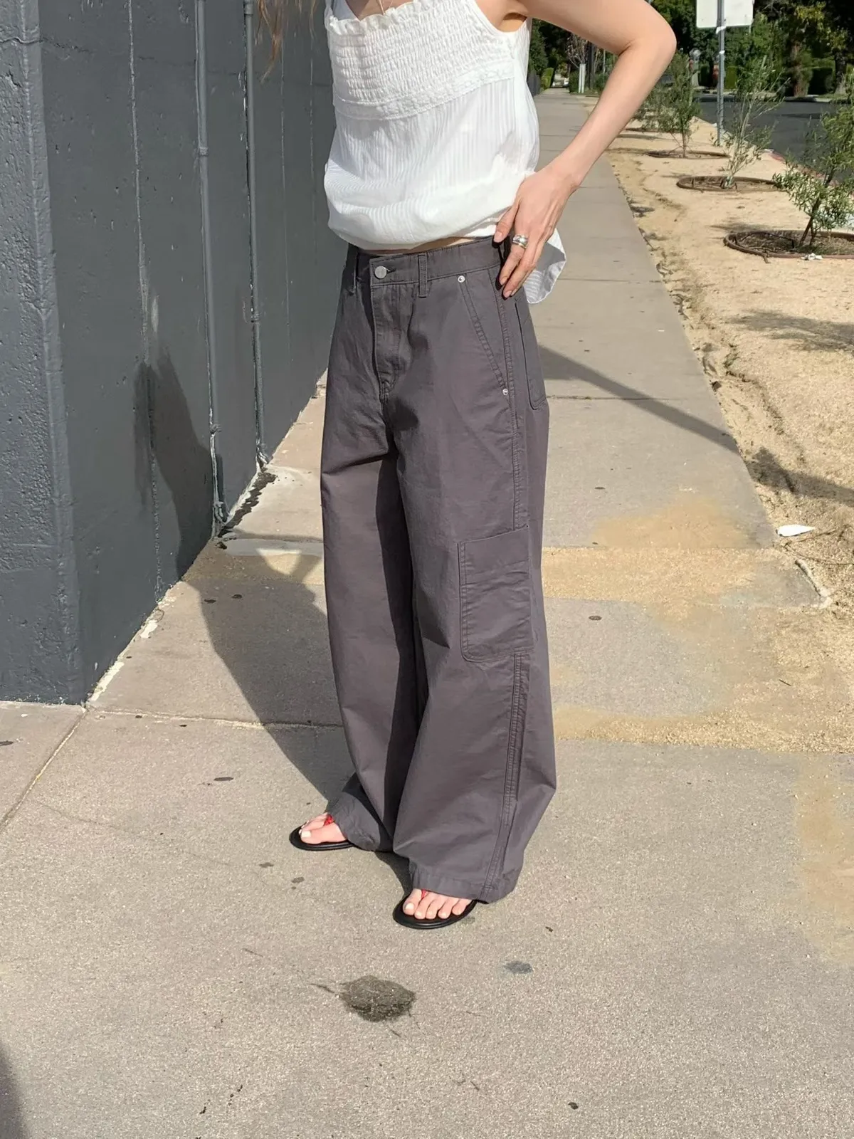 C714捲髮歐膩工裝棉質長褲(S/M/L)