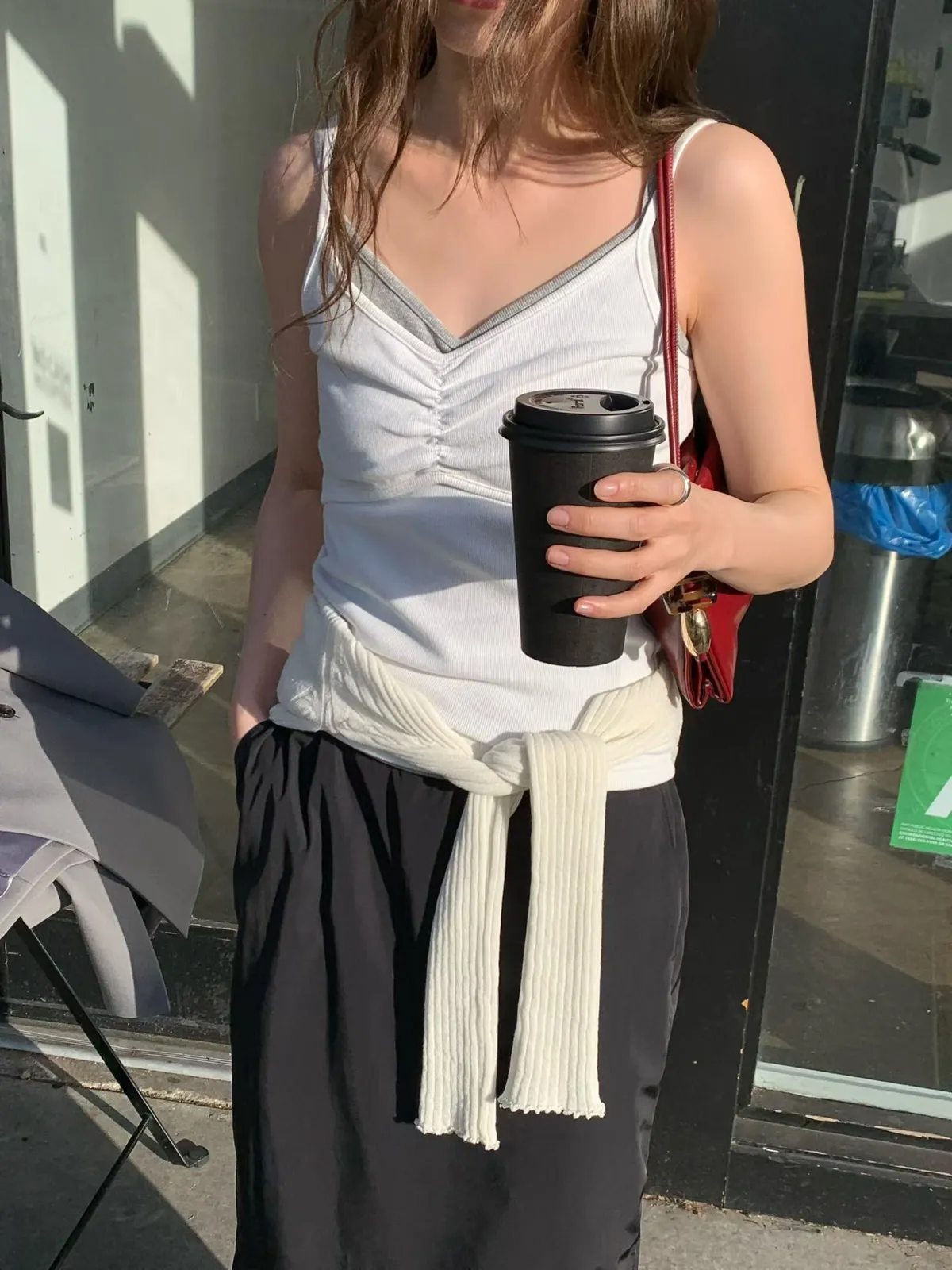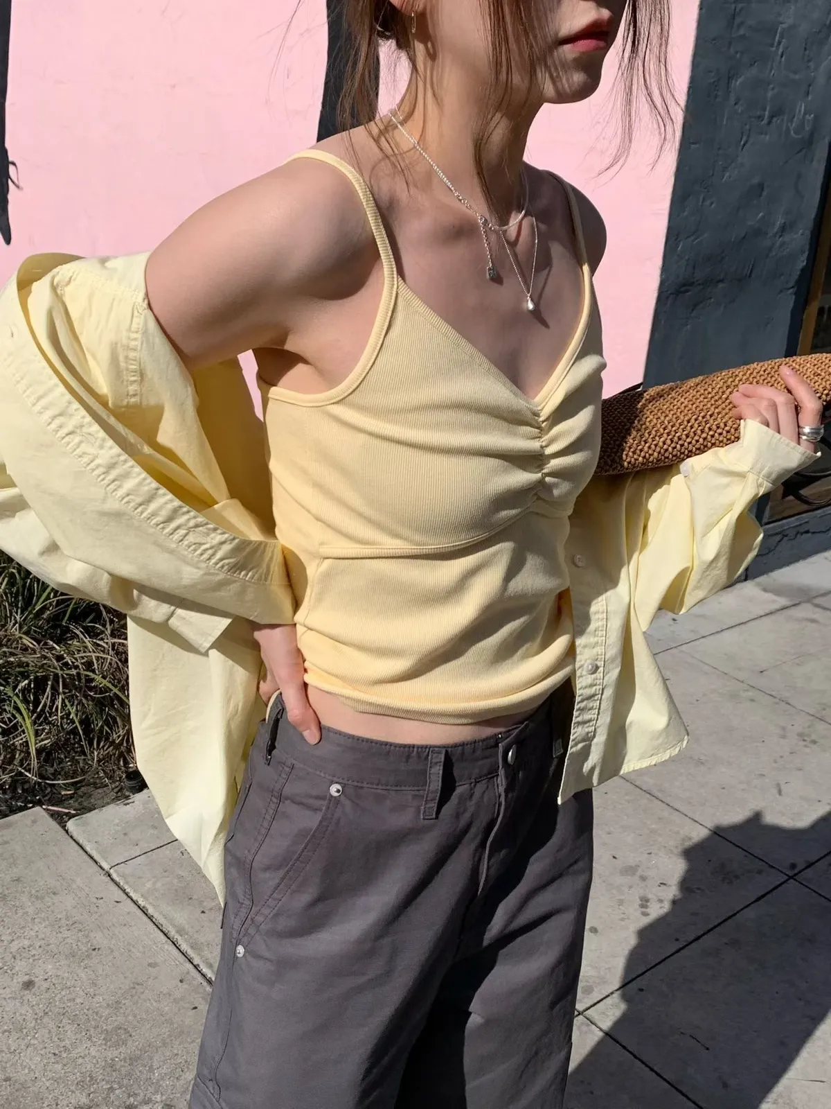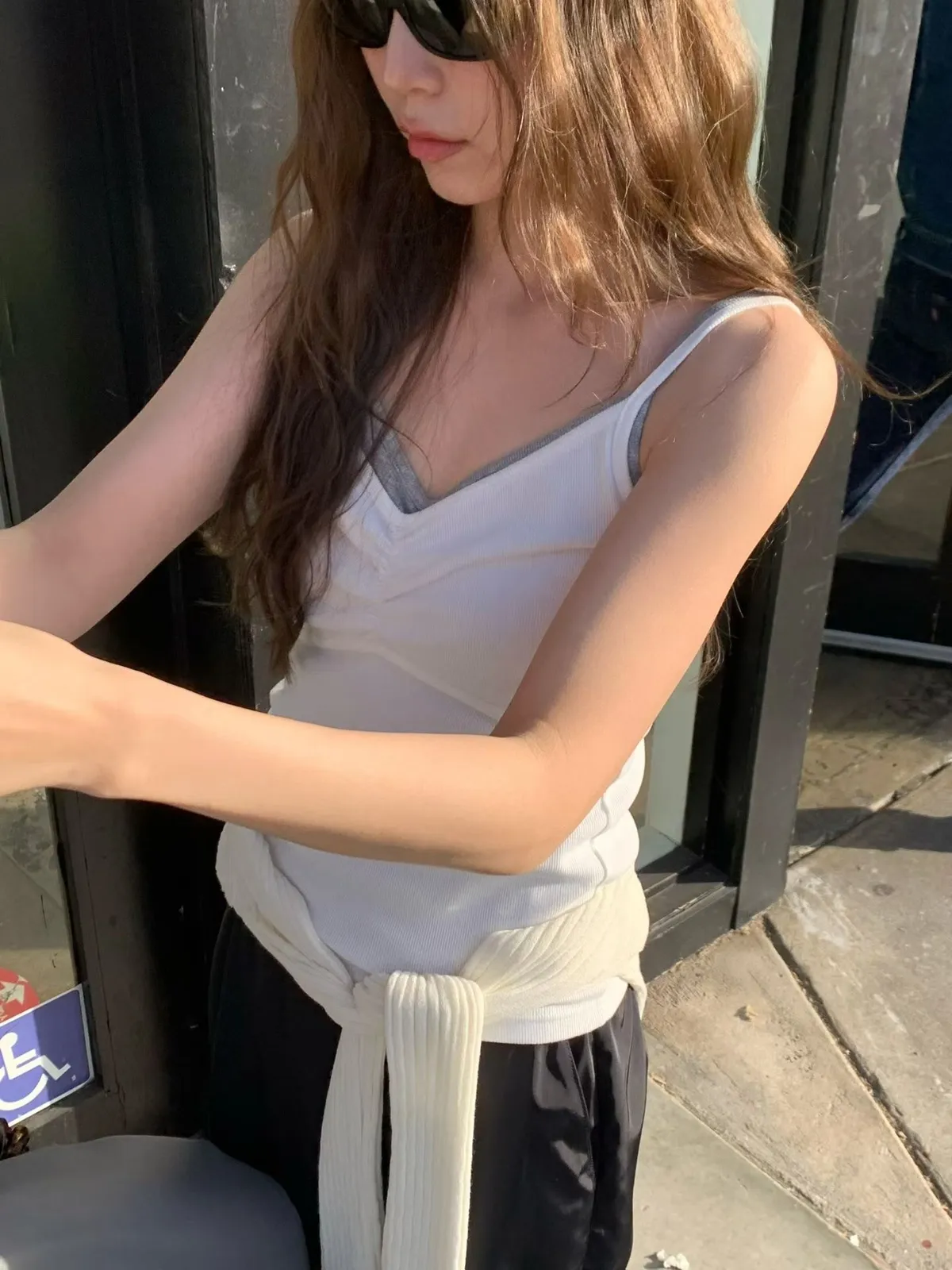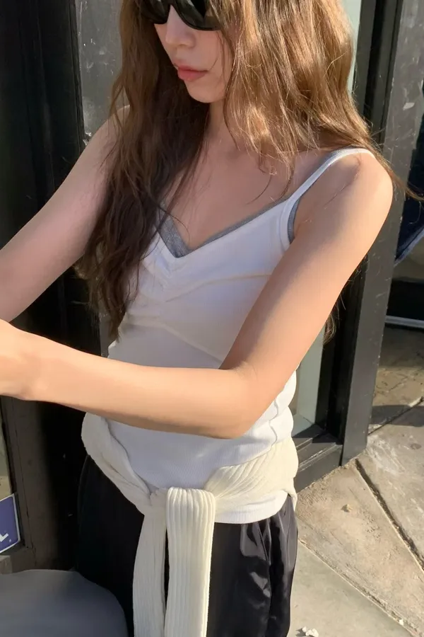 C711捲髮歐膩抓皺細肩背心