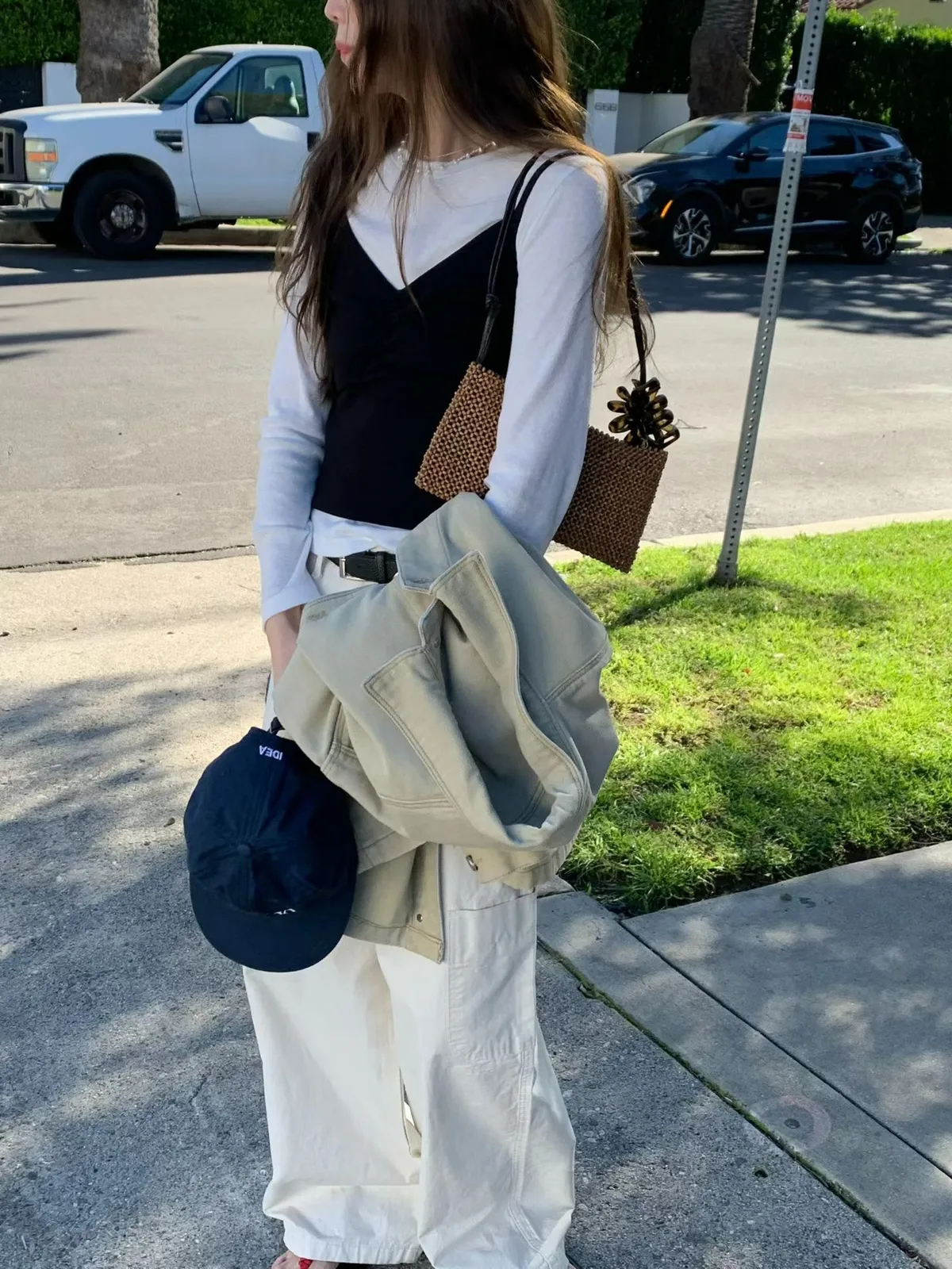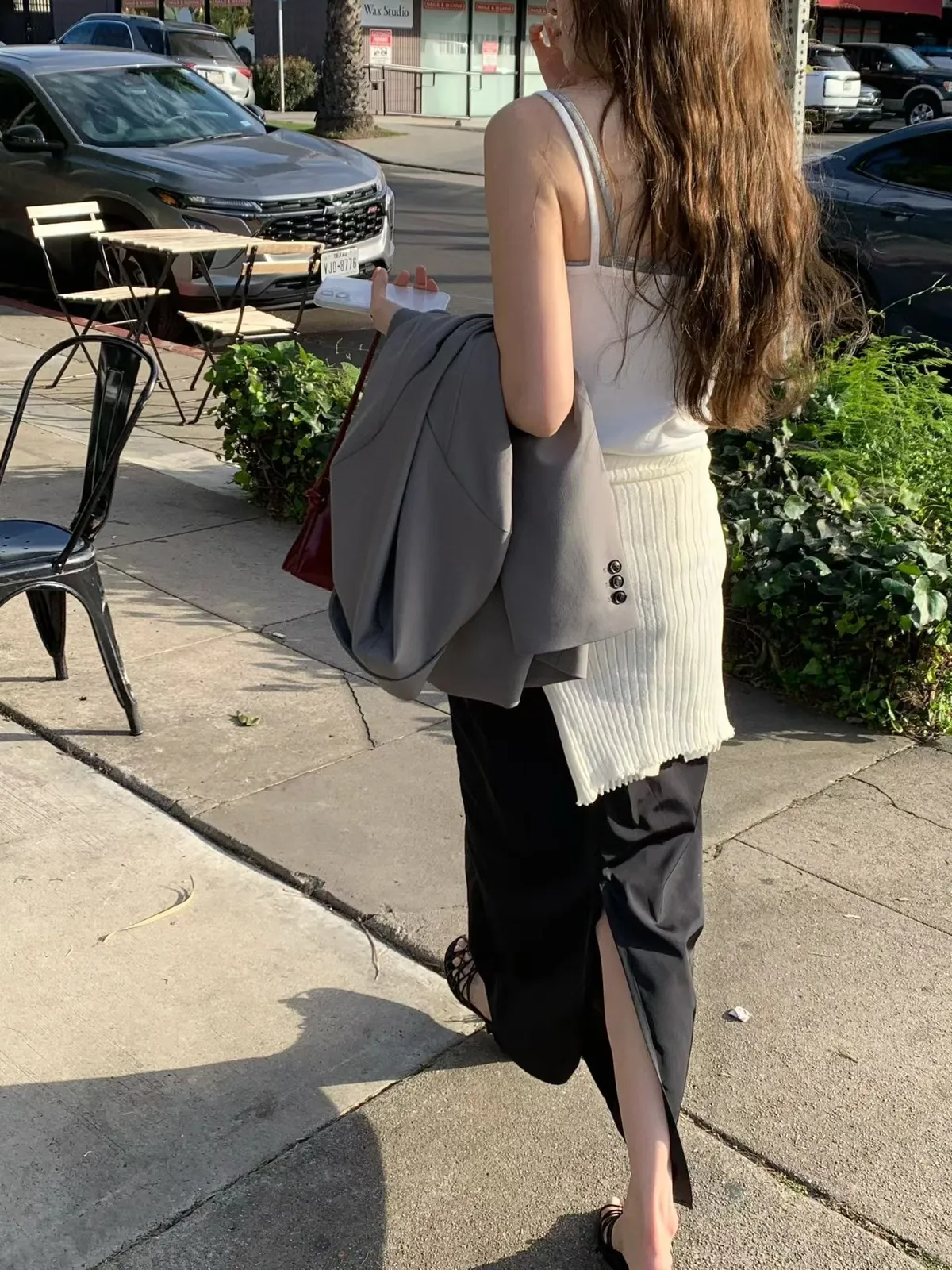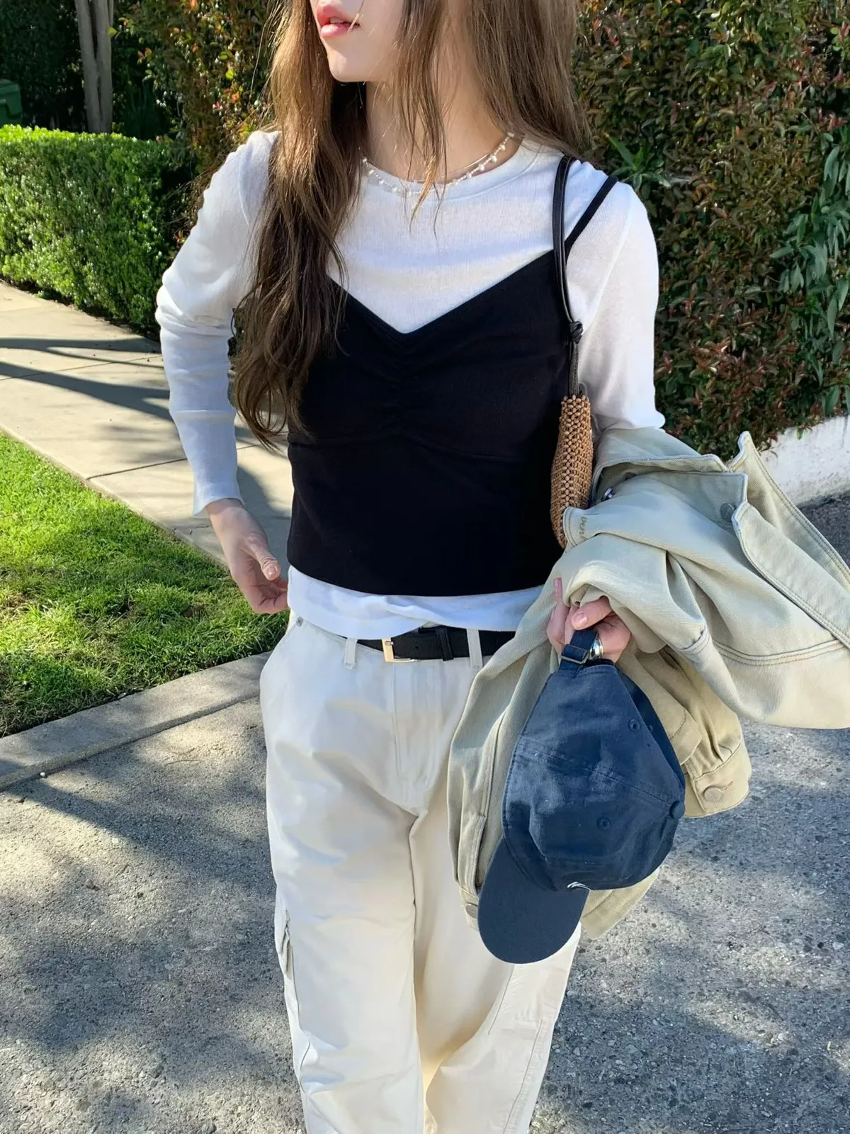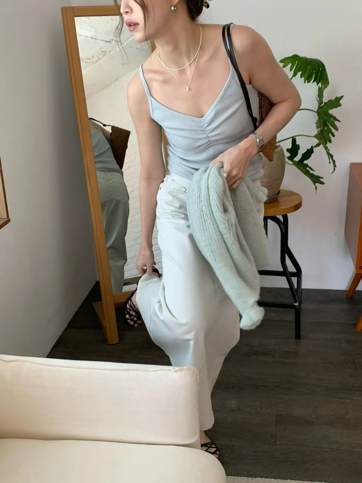 C711捲髮歐膩抓皺細肩背心