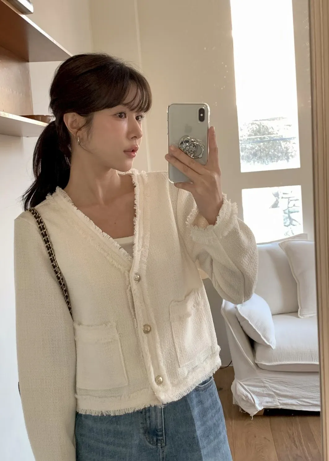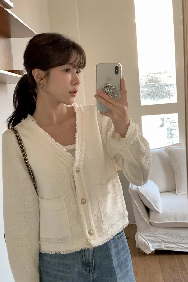 C814拱門家小香風抽鬚外套