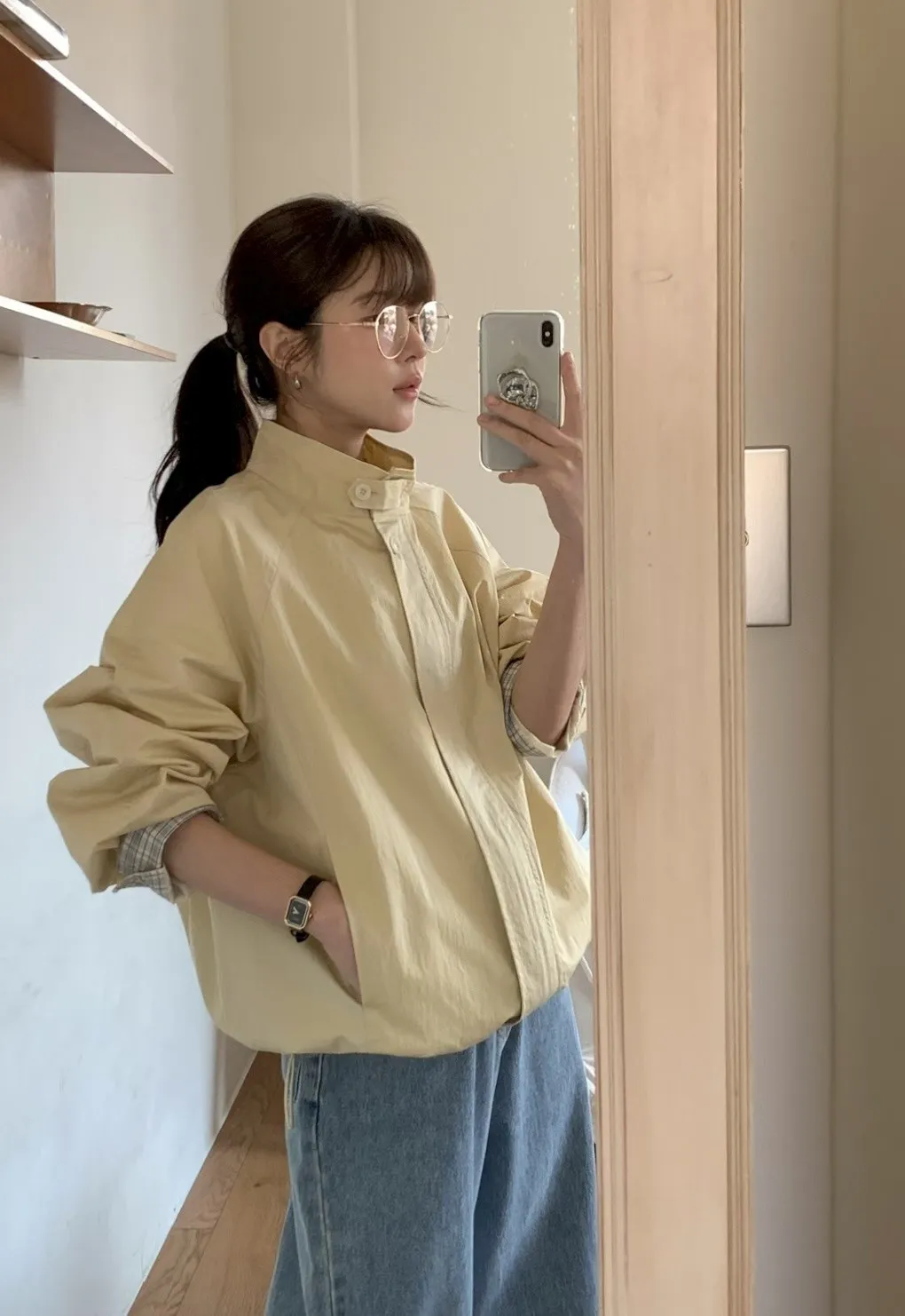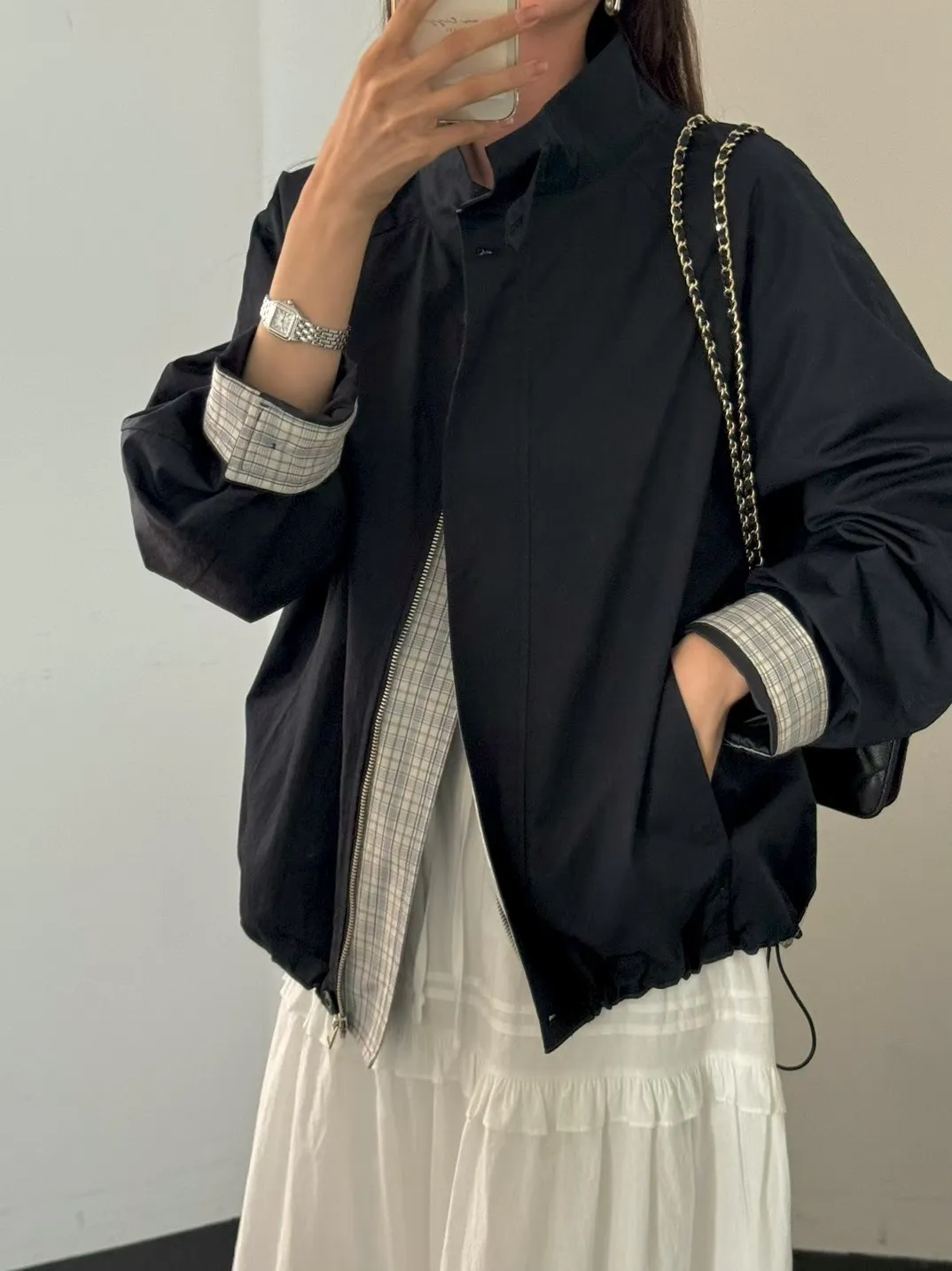 C808拱門家格紋反摺外套
