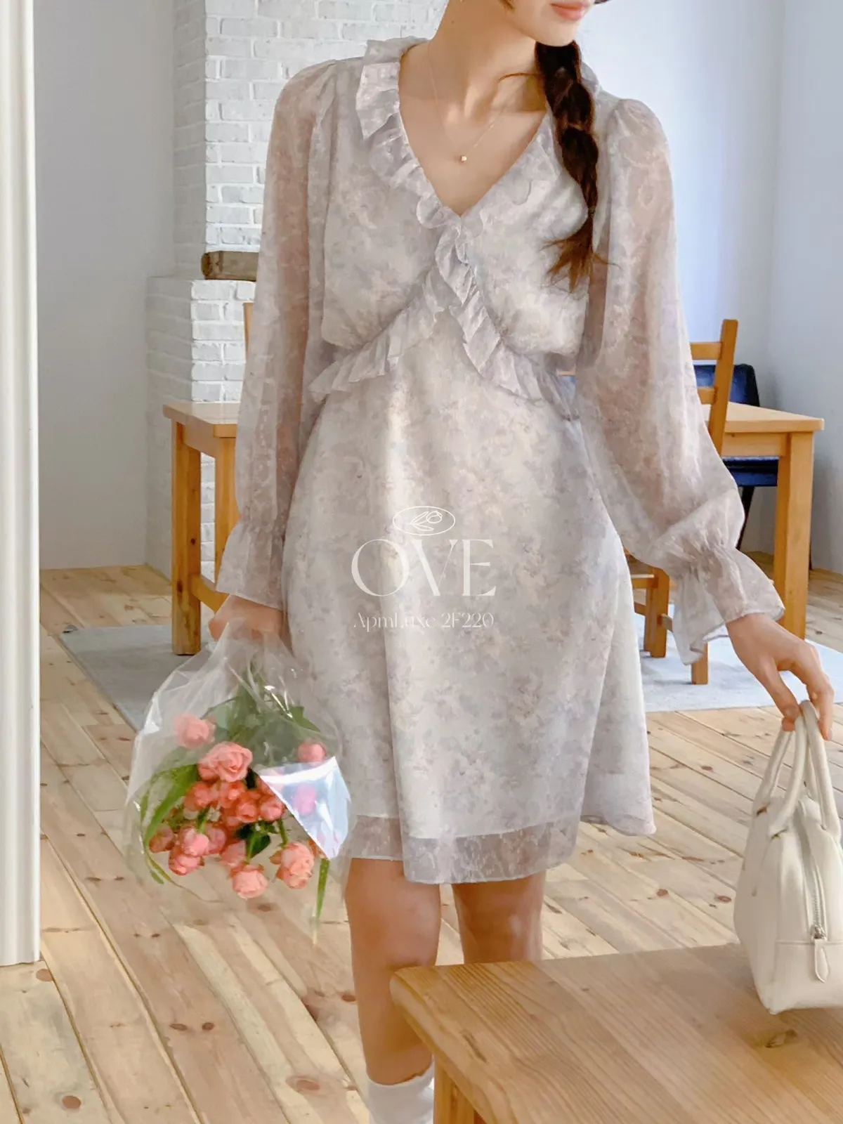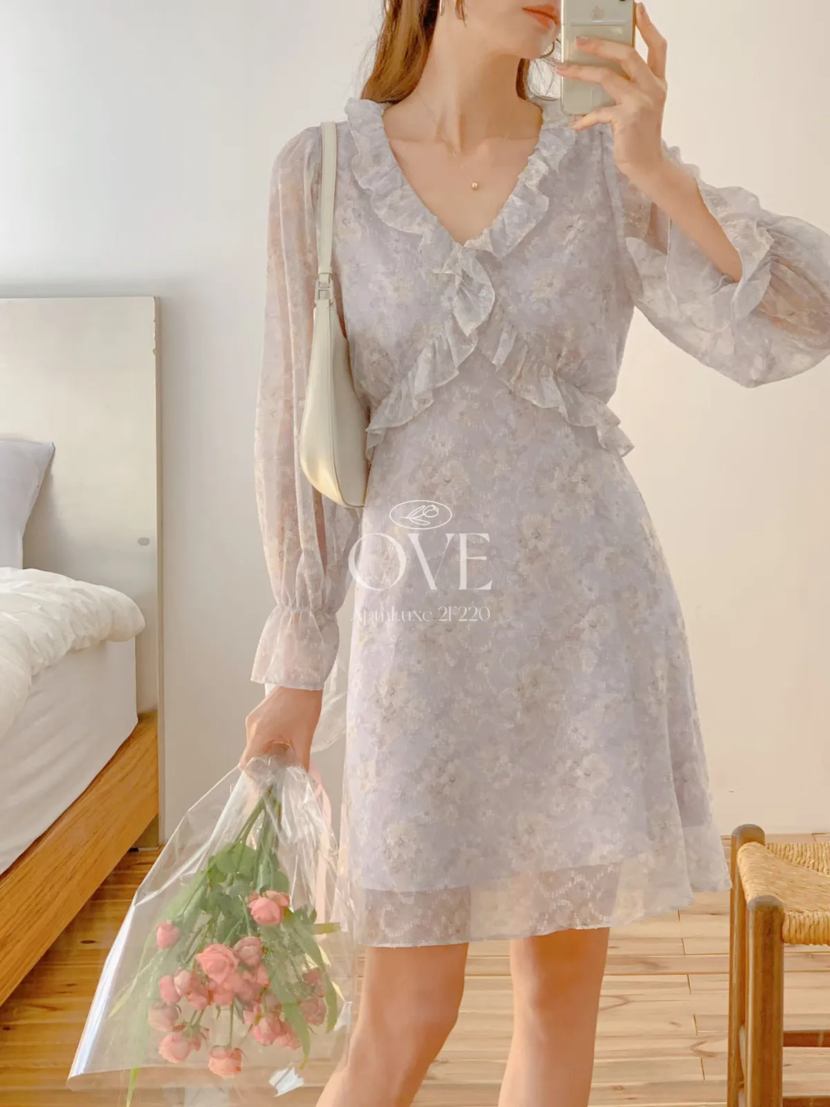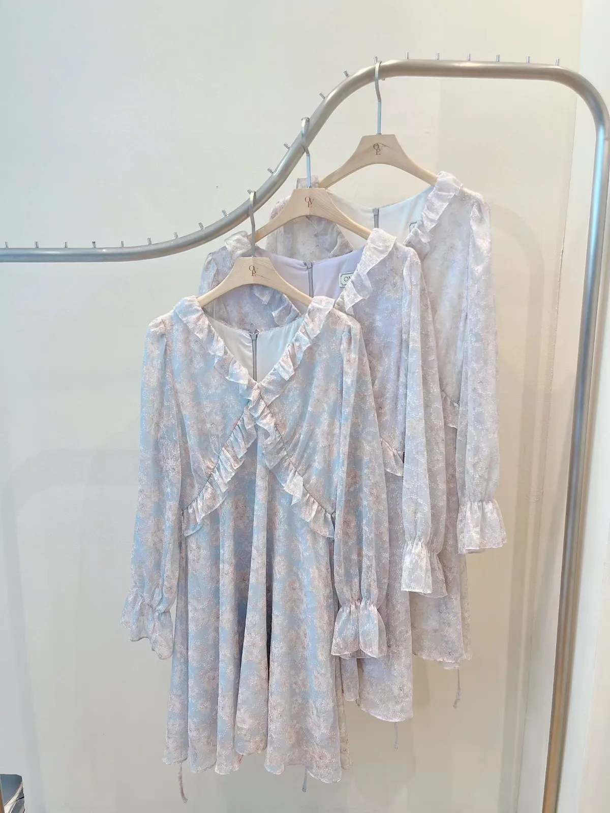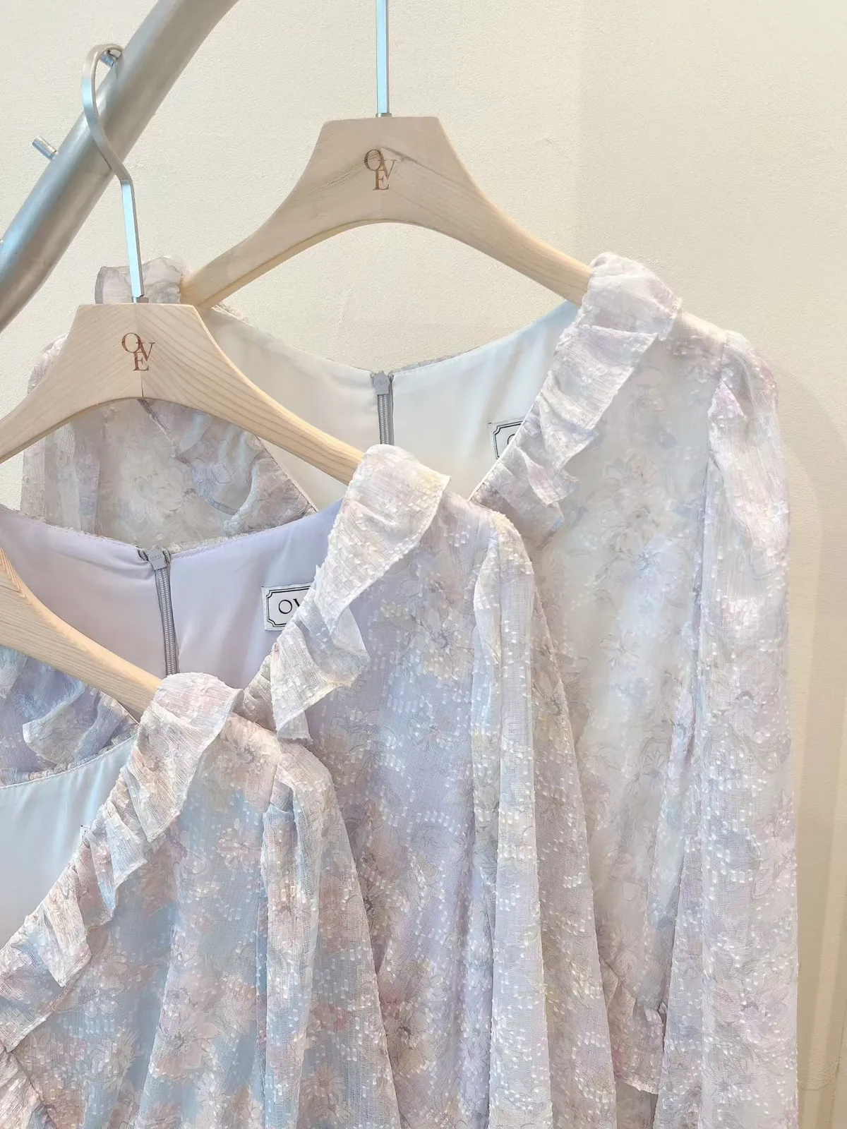 C404浪漫洋裝家立體花紋荷葉洋裝