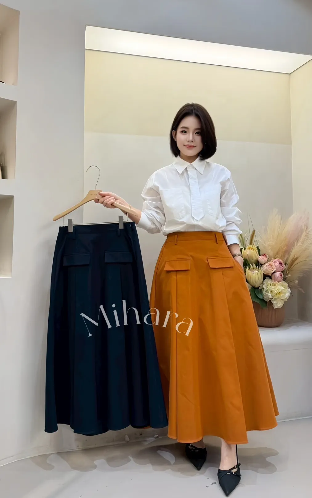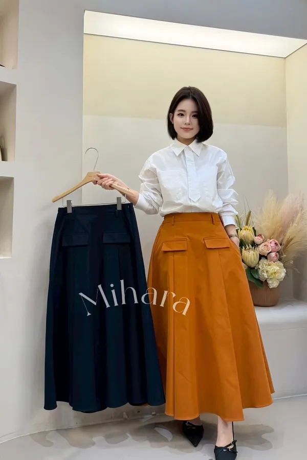A2 0222可愛歐膩家立體壓褶假口袋A字半裙2色