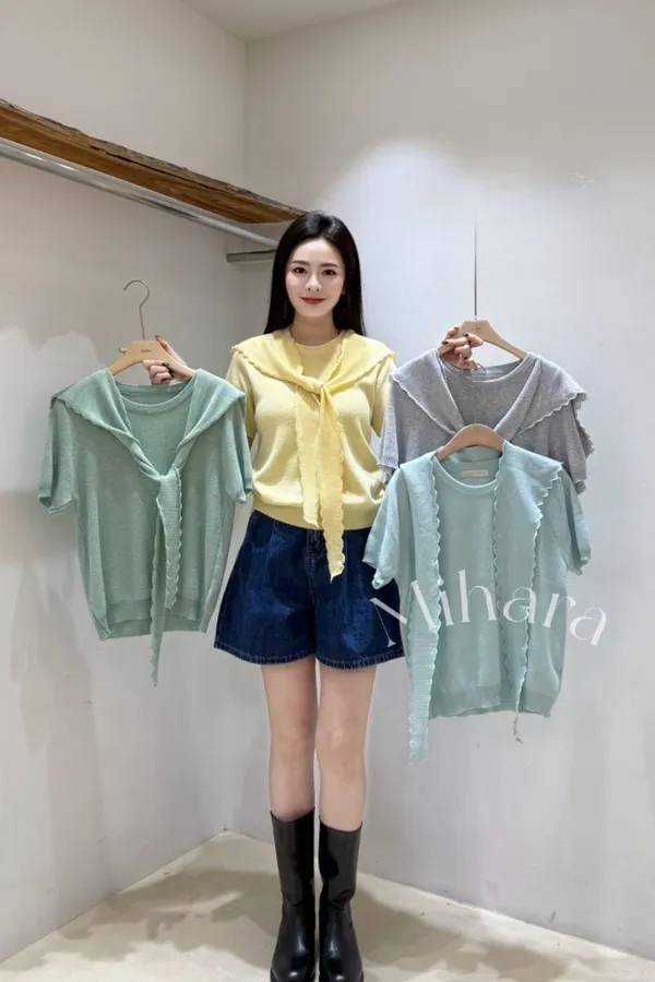 A35 0223CP甜甜家圓領針織衫附披肩4色