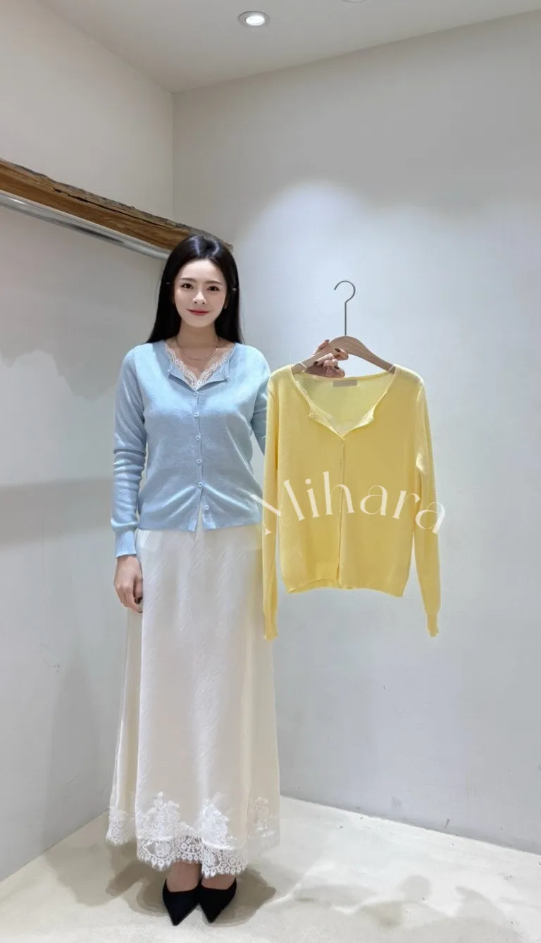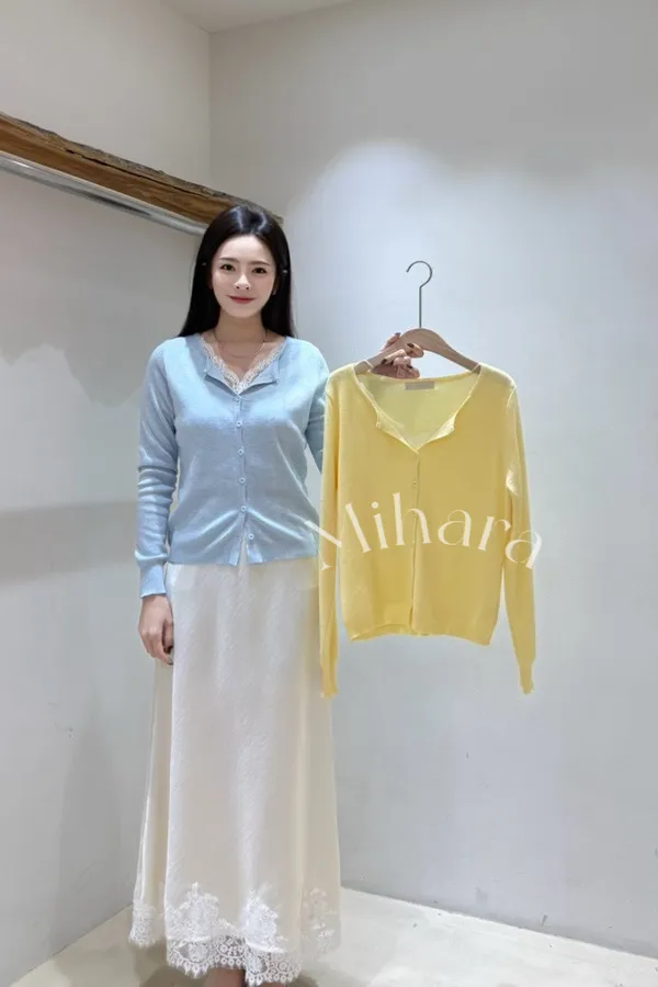 A44 0223CP甜甜家拼接蕾絲V領針織衫2色