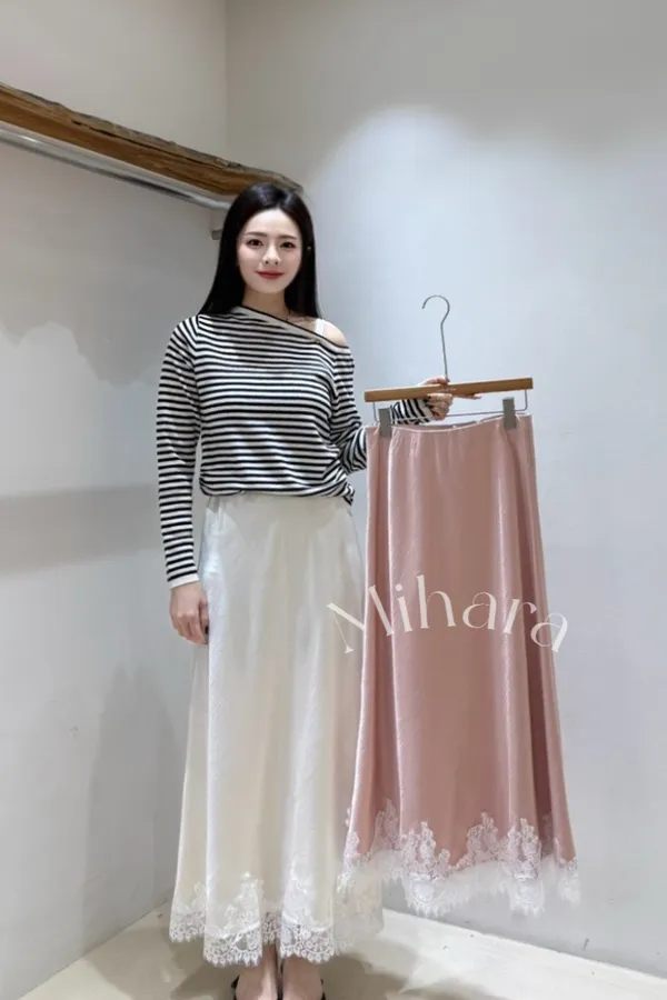 A47 0223CP甜甜家橫條斜領肩帶上衣