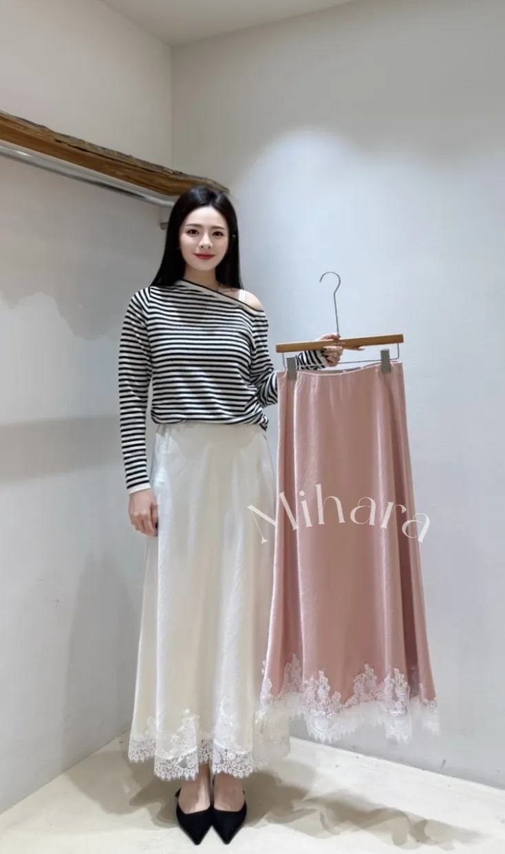 A48 0223CP甜甜家拼接蕾絲下擺光澤半裙2色
