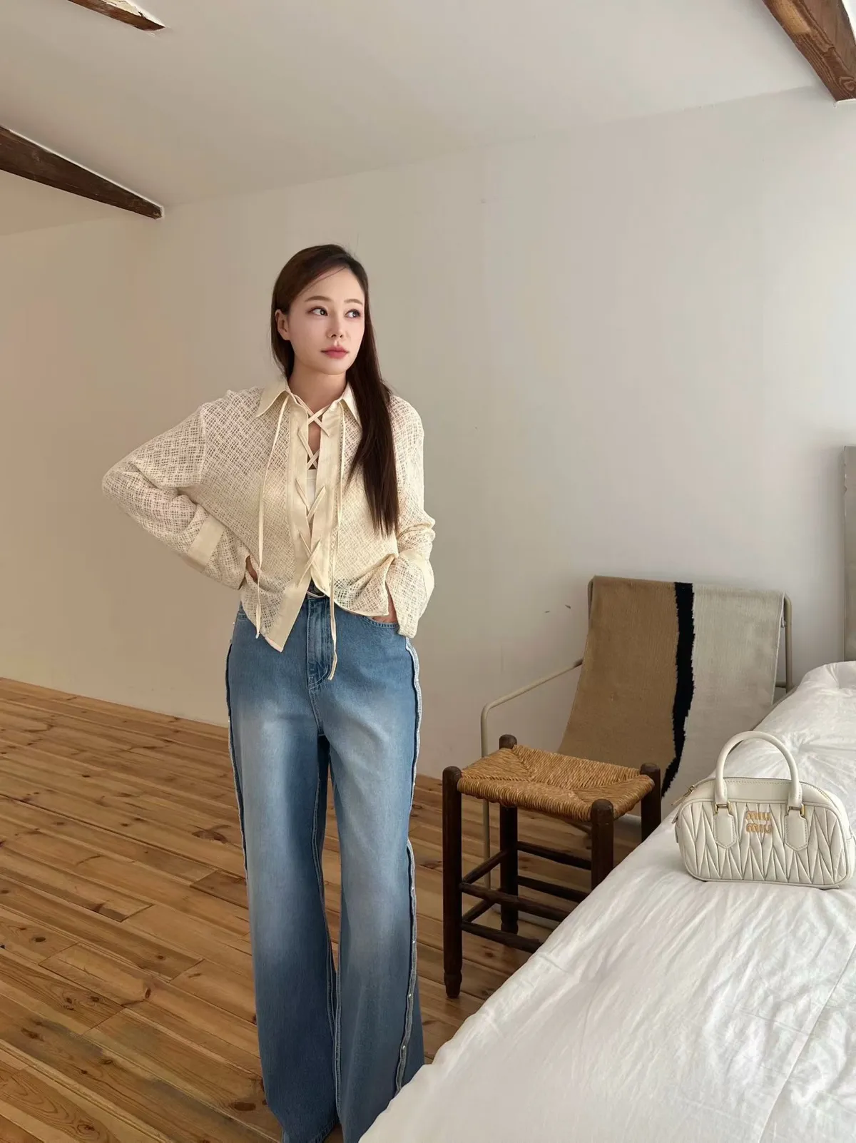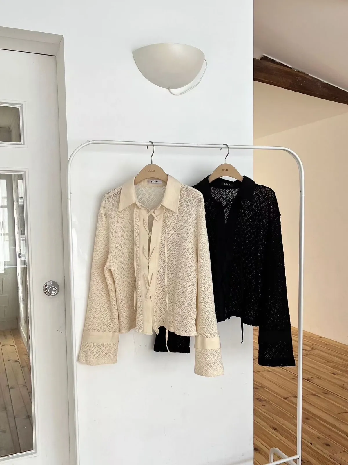 A60 0224設計家綁帶簍空襯衫2色