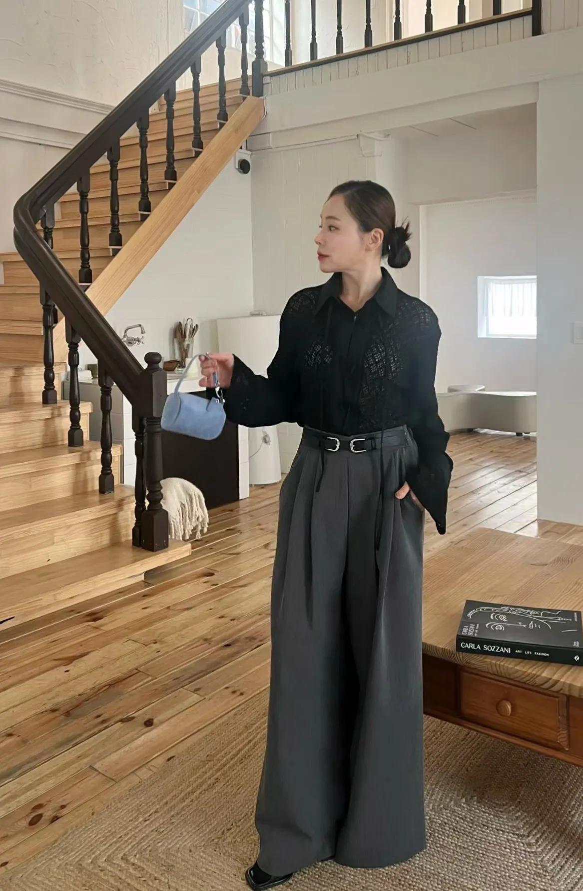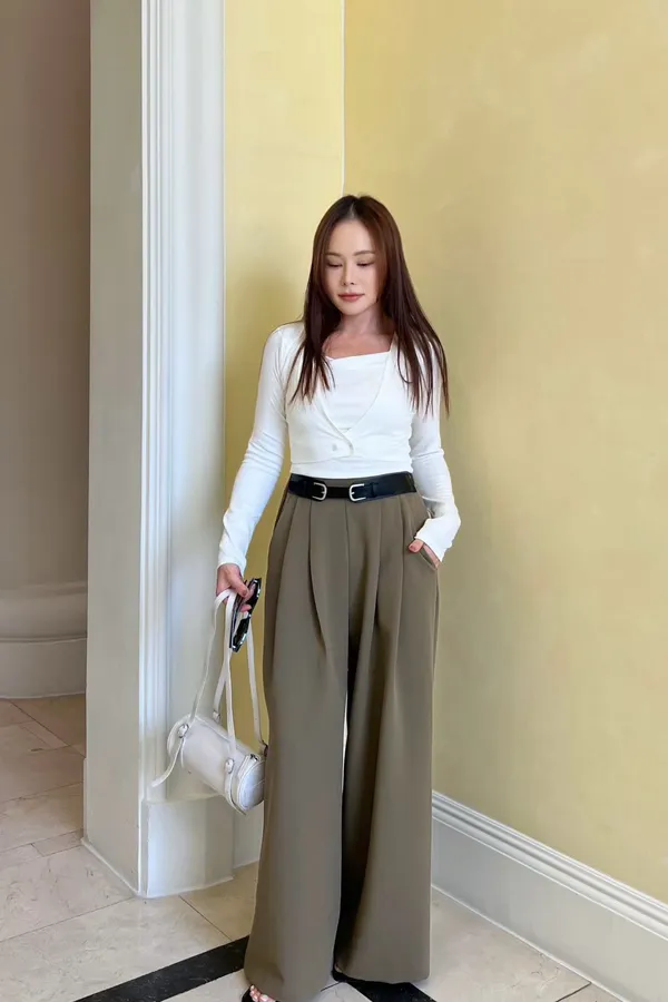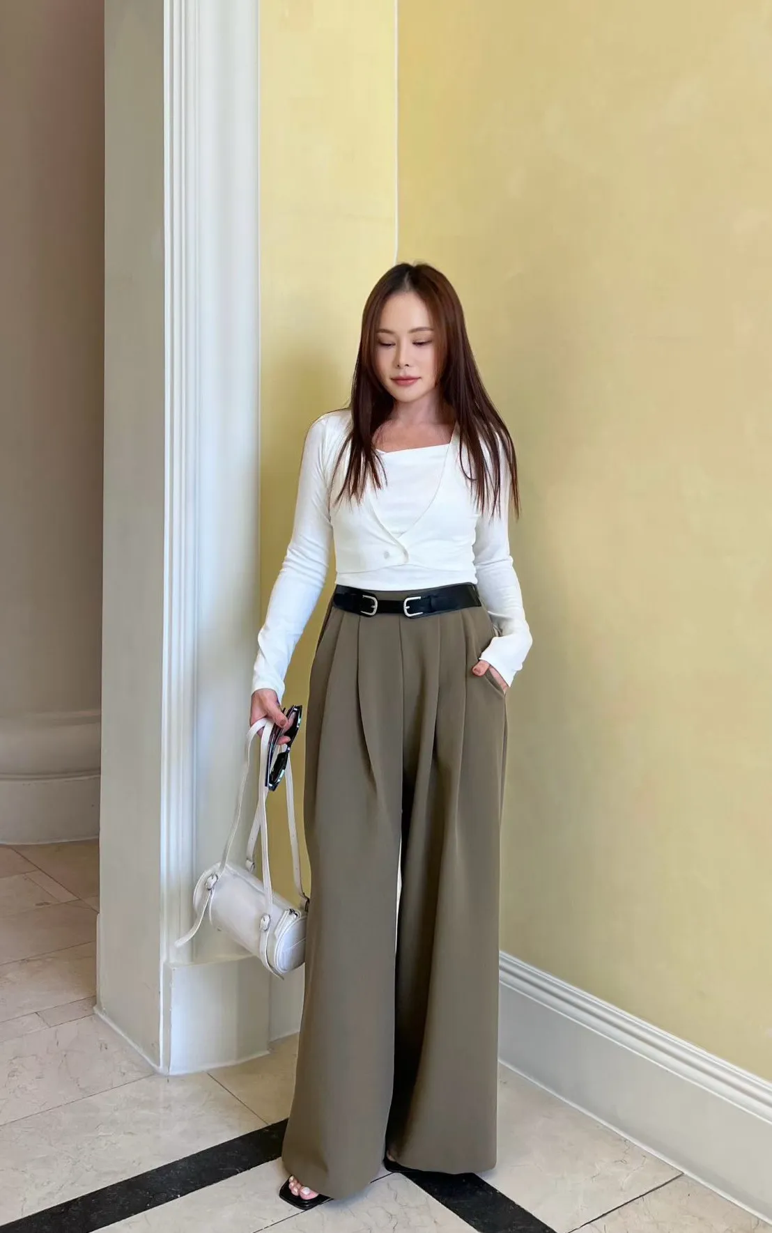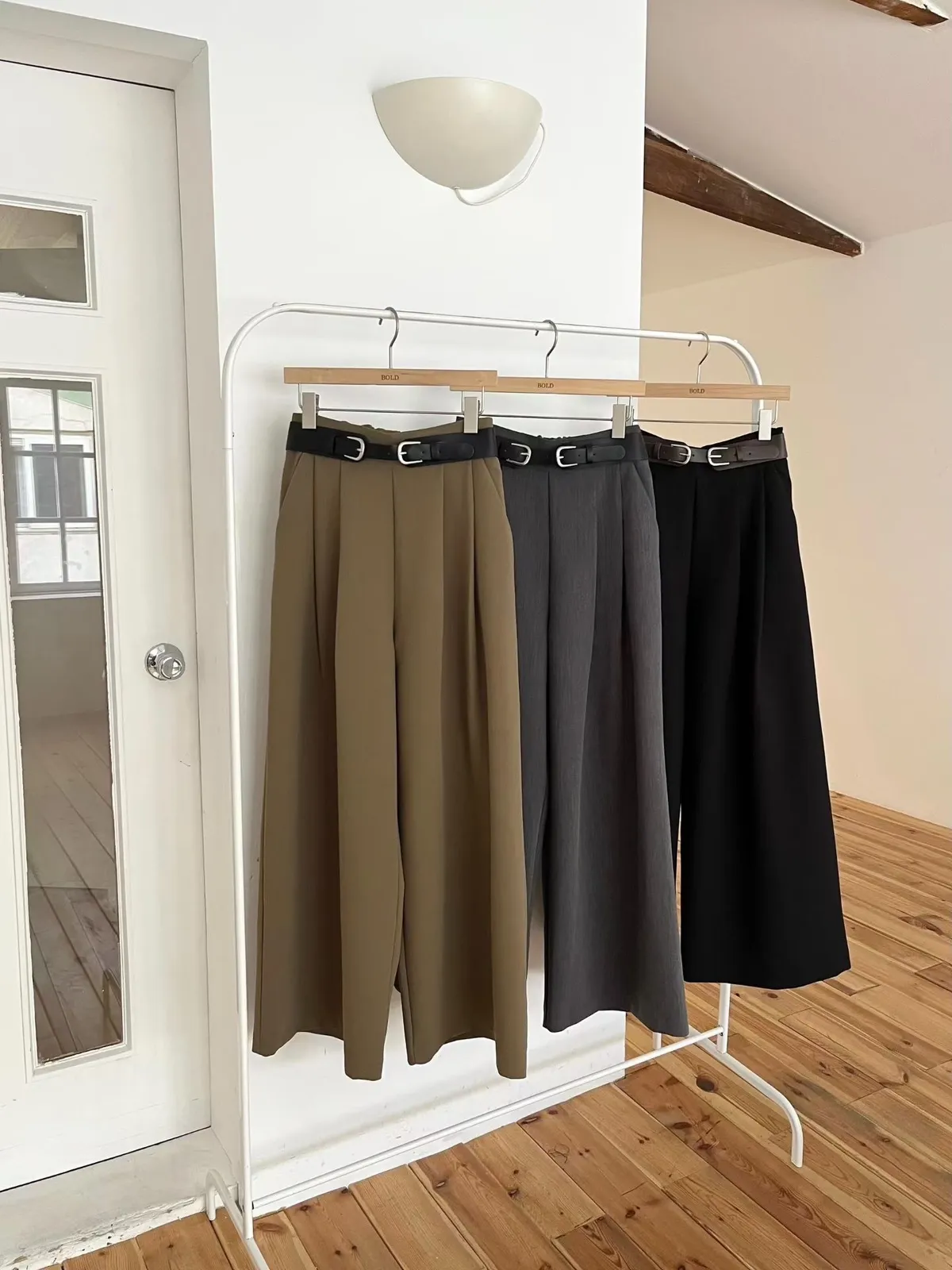 A61 0224設計家立體壓褶皮帶寬褲3色