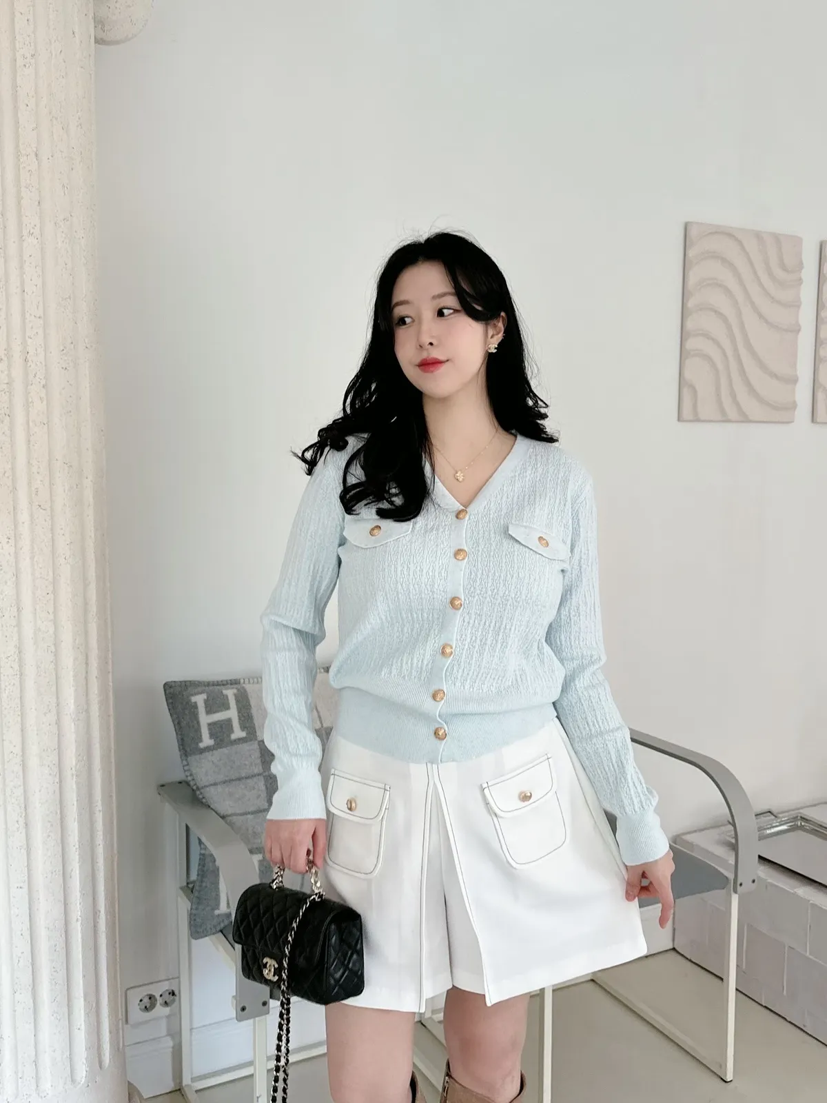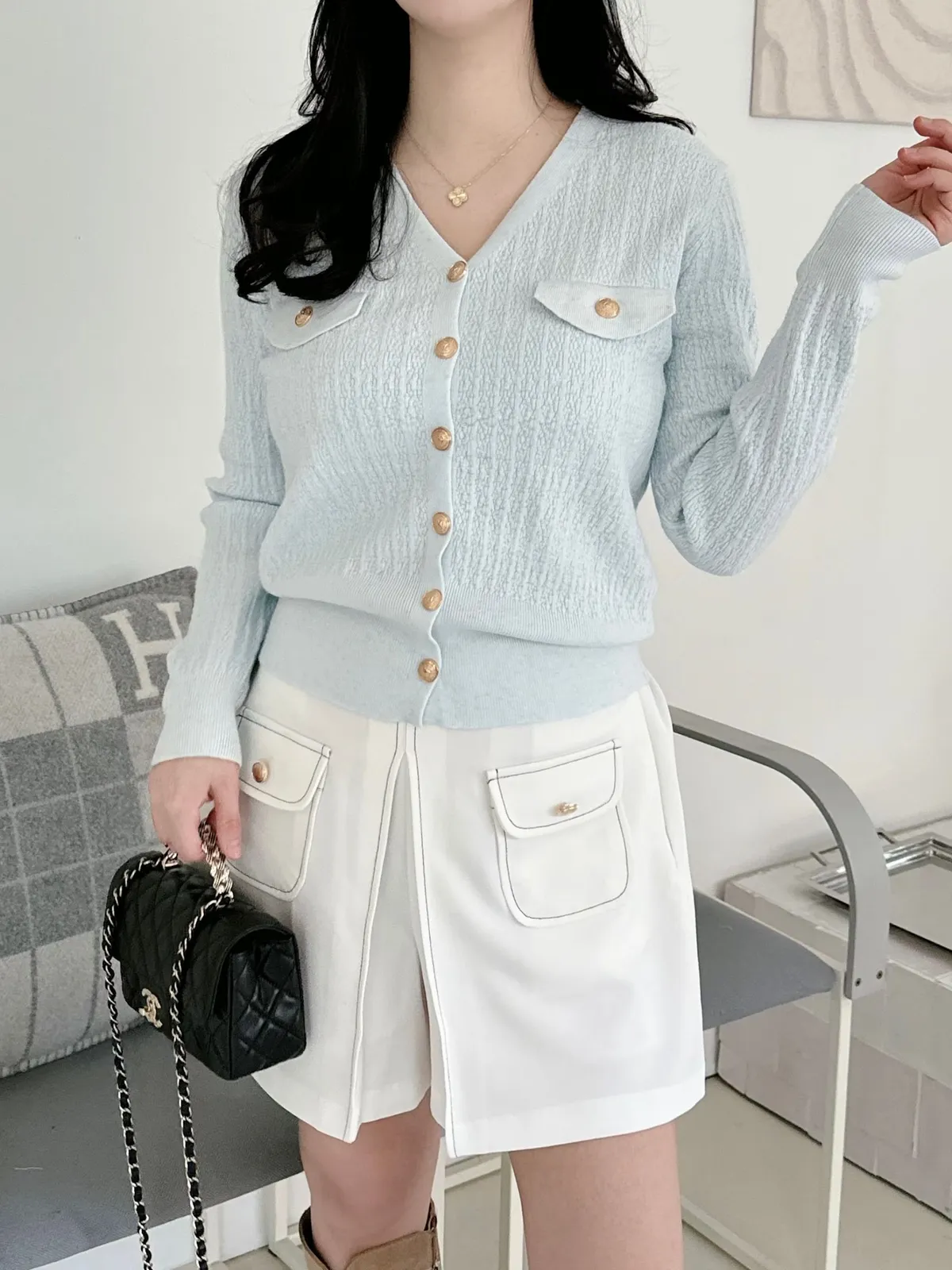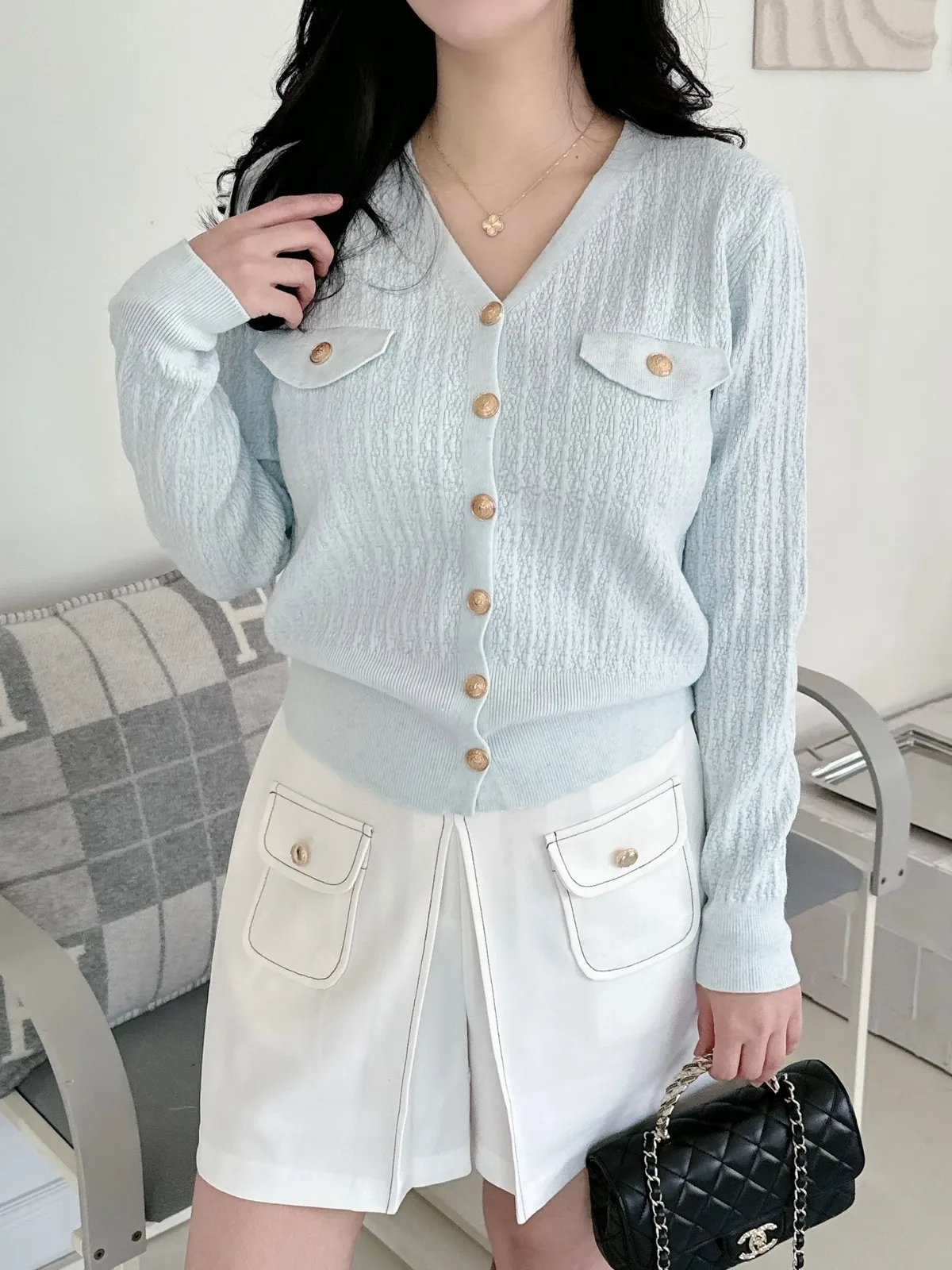 A74 0224雙胞胎歐膩家V領小香針織外套3色
