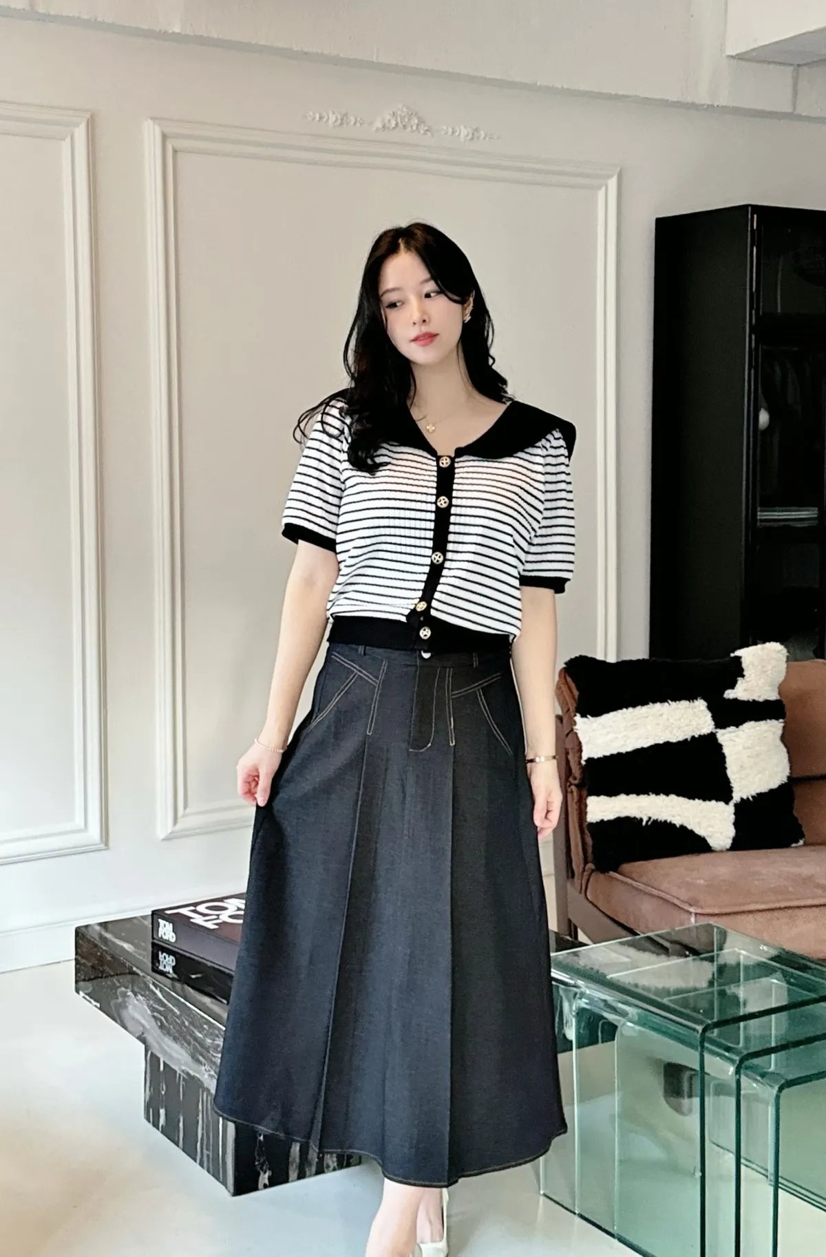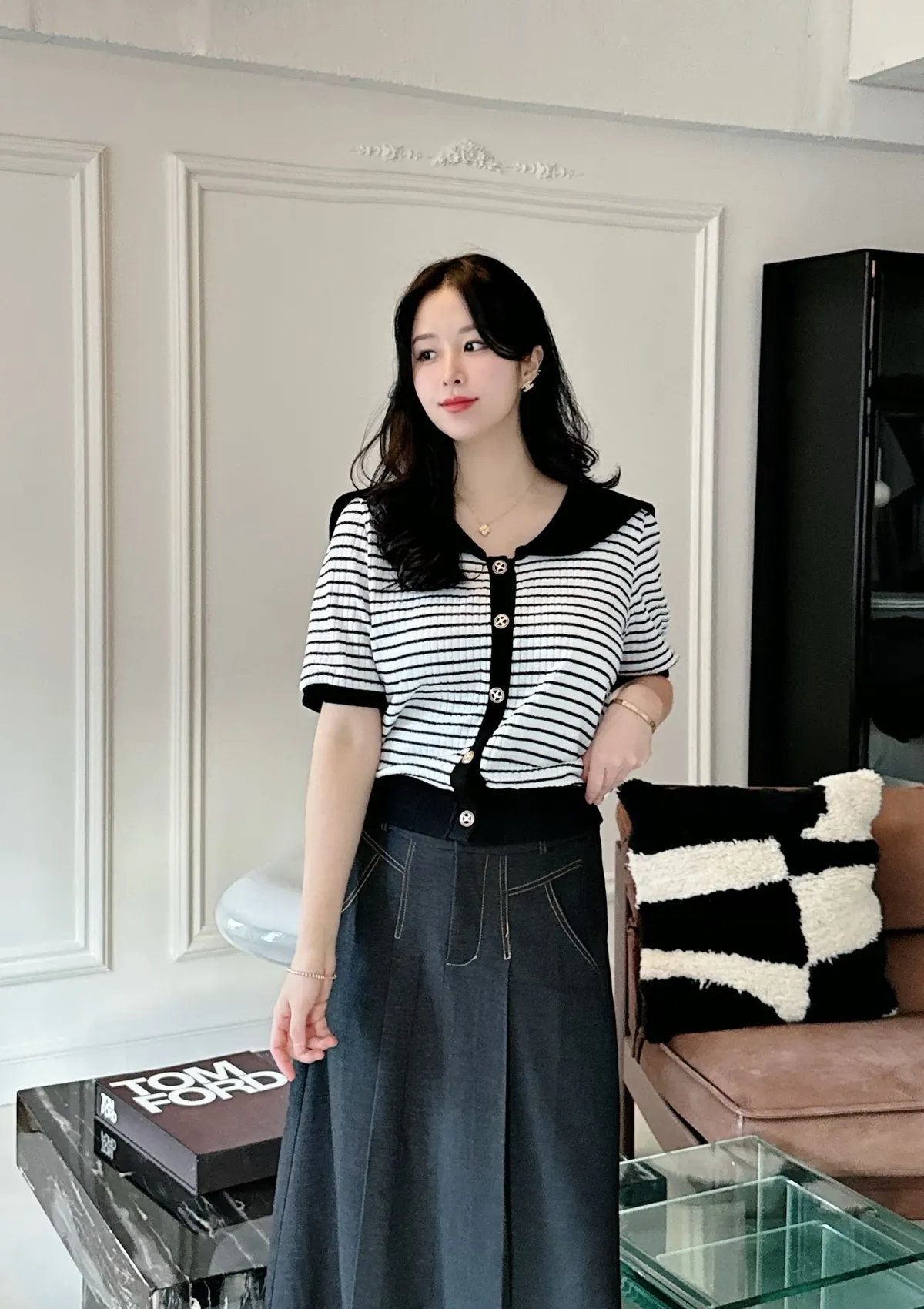 A76 0224雙胞胎歐膩家橫條翻V領針織衫3色