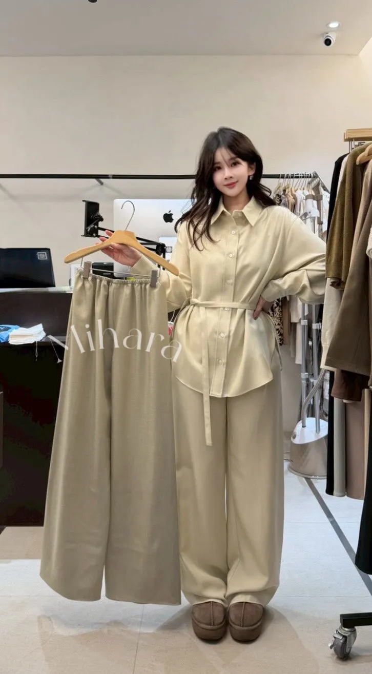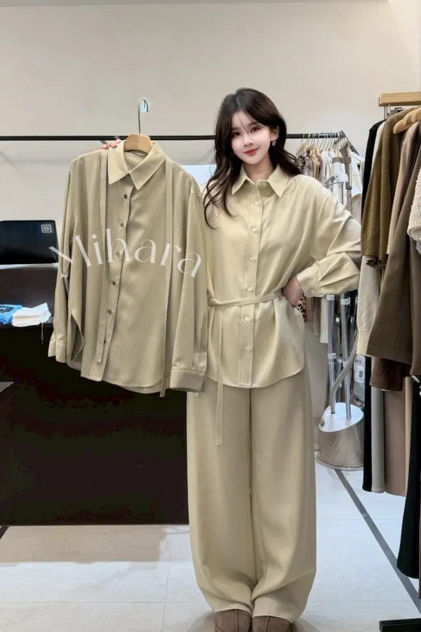 A2 0225高檔套裝家側開衩襯衫附綁帶2色