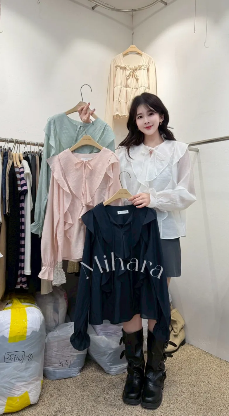 A24 0225甜美OL家荷葉邊綁帶雪紡上衣4色