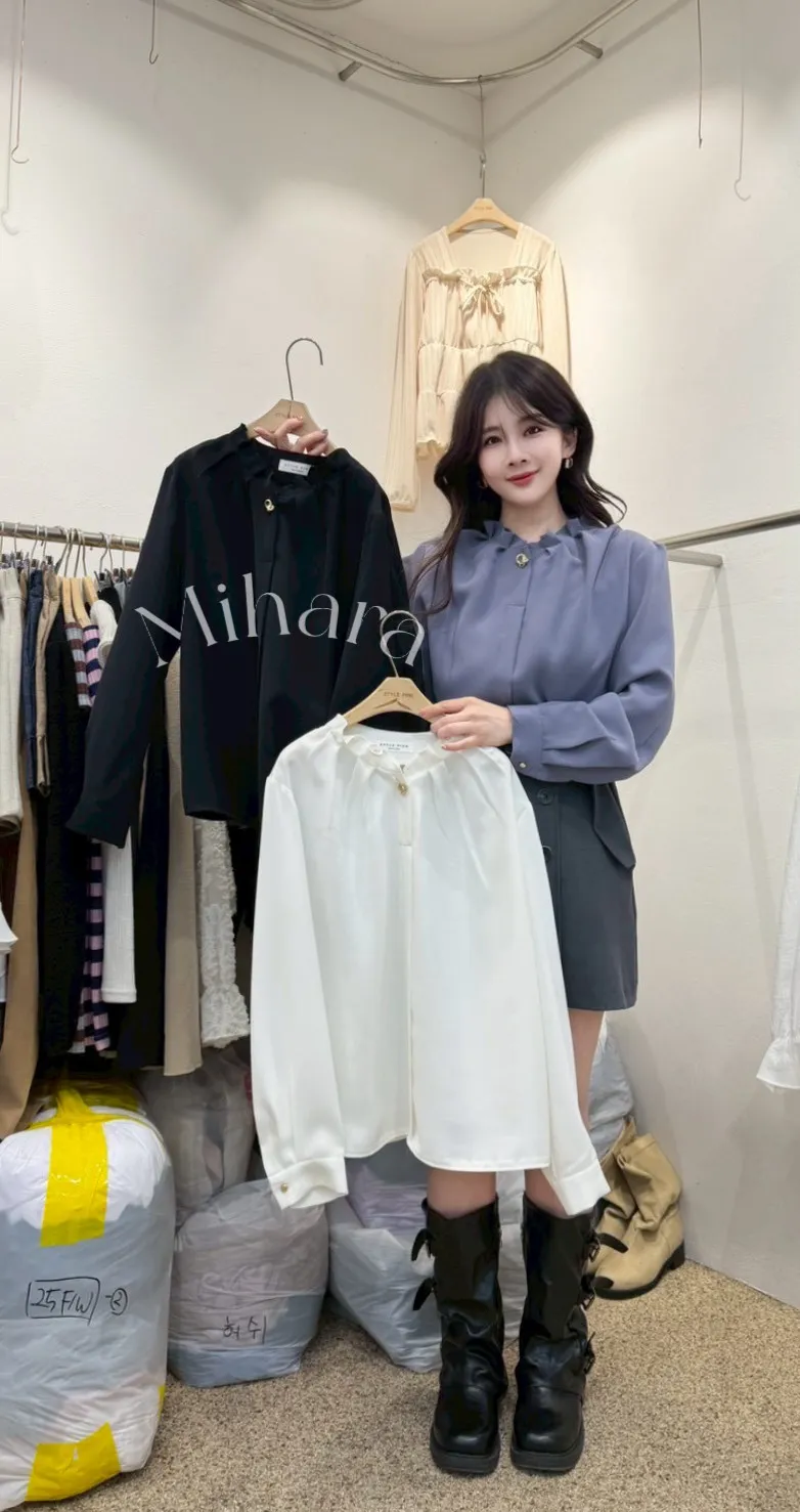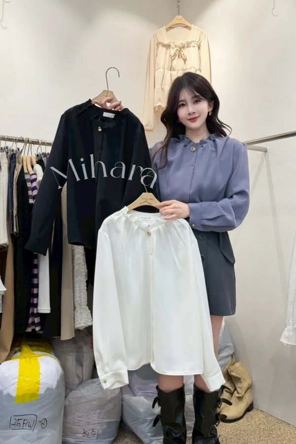 A25 0225甜美OL家抓褶V領雪紡上衣3色