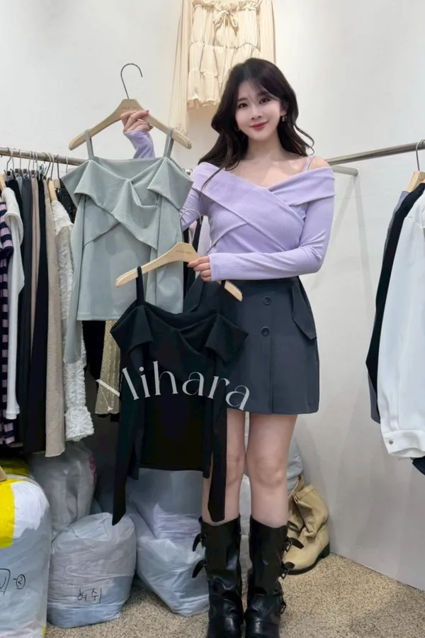A26 0225甜美OL家交叉細肩帶挖肩上衣3色