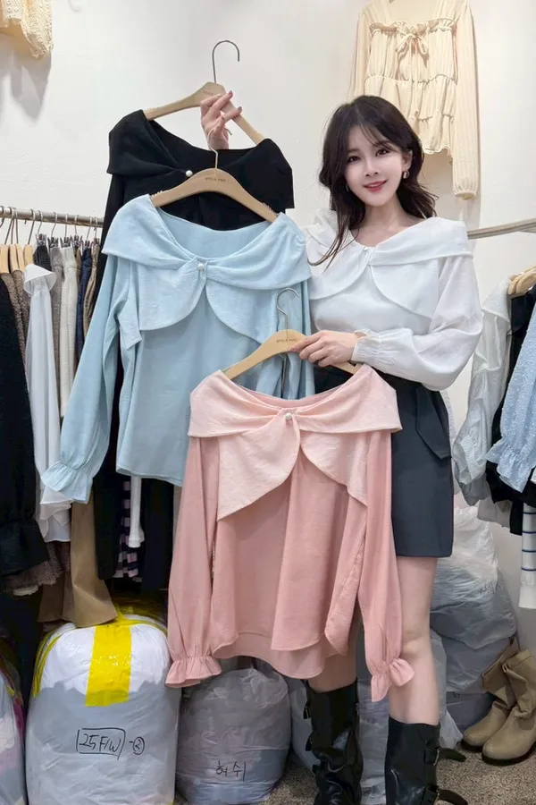 A31 0225甜美OL家珍珠大翻圓領雪紡上衣4色