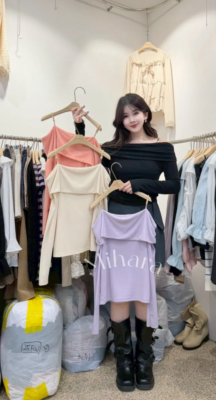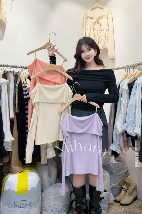 A33 0225甜美OL家小香鍊條肩帶一字翻領上衣4色