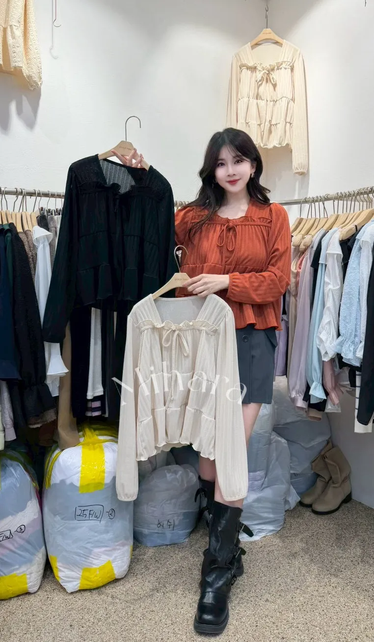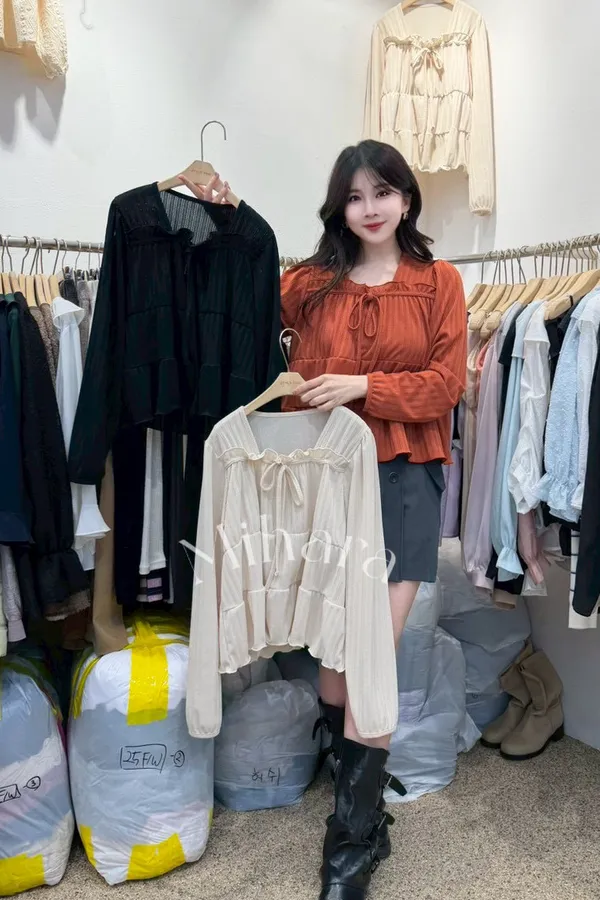 A39 0225甜美OL家綁帶方領蛋糕上衣3色